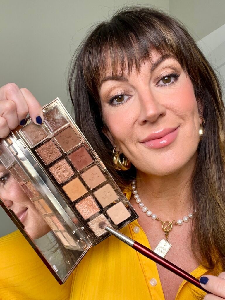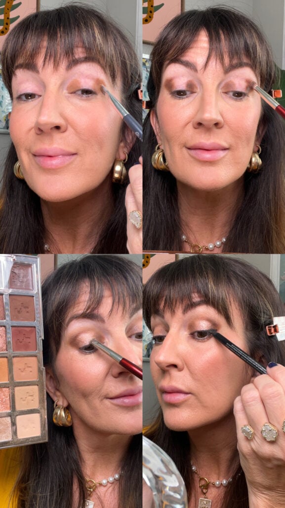 The whole secret? Darker shades on the inner + outer corners — with shimmering light in the center. It’s perfect for elevating your look with whatever your wardrobe is for the upcoming Thanksgiving festivities and beyond till the New Year!