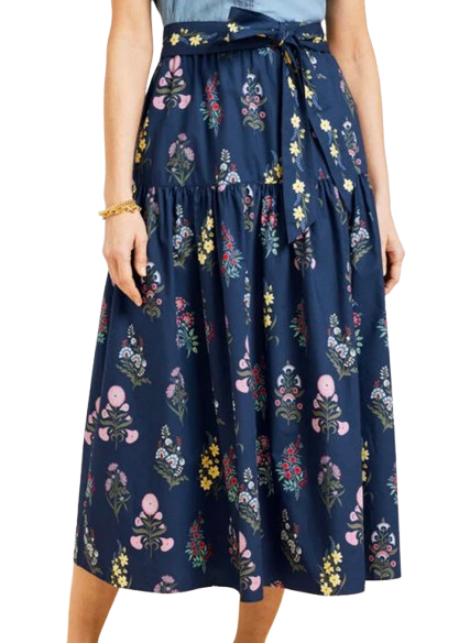 Flowing and feminine, this midi skirt in India Ink is a tribute to timeless style. Its modern poplin fabric and flounce detail create movement and grace, perfect for transitioning seamlessly from day to night. Pair it with your favorite ribbed tee or tailored jacket for a balanced, chic look.
