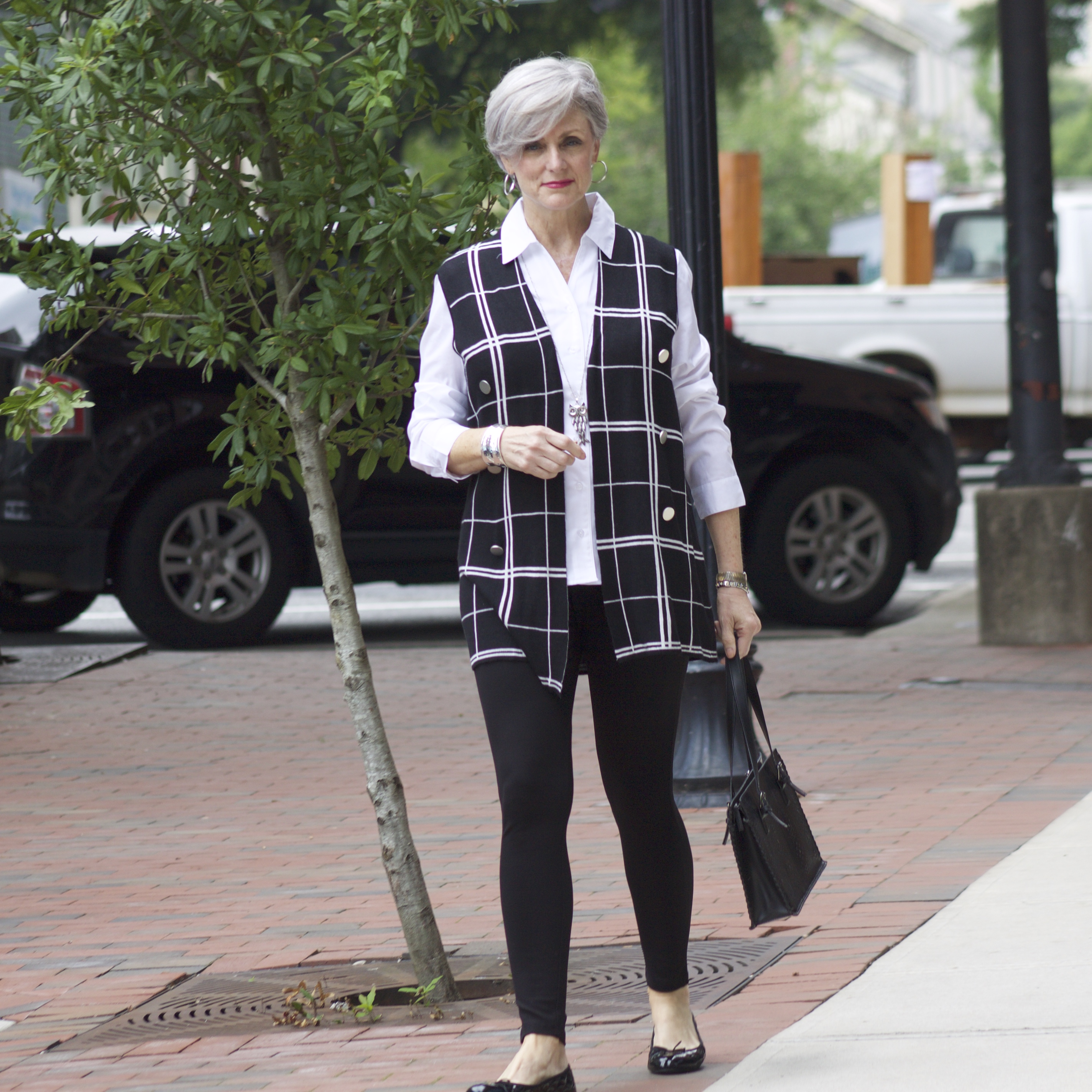 who’s ready for the weekend? okay, technically, it’s thursday which means saturday is still two days away, but this week has been jam-packed so i’m more than ready for a laid-back day. isn’t this the perfect ootd for a saturday filled with stops at the farmers market, coffee shop, and florist? if i threw on a red scarf i’d be ready for a georgia bulldogs game! a long vest continues to trend this fall. i particularly like how it looks paired with leggings. there’s coverage in all the right spots. but these leggings have an amazing fit. they’re made of ponte knit (one of my favorite fabrics) and have a hidden tummy-slimming panel. in past years, i’d never been a big fan of leggings. but that will change this fall due to the terrific fit this pair offers. stay tuned to future posts. of course, black leggings and a crisp white shirt are a no-brainer. but add a pair of ballet flats that are perfect for a busy day on your feet, and you have conquered weekend chic. saturday, i’m calling your name.