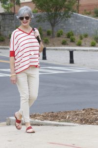there’s nothing like a burst of color to brighten your mood. and this geo-printed dress is an explosion of color certain to bring a smile to your face. the fit is figure flattering for all body types plus it’s lined with a navy blue slip. and the fabric? it’s light and airy and perfect all summer long. today, i’ve added a pair of orange sandals that many of you remember from last year (i had a crush on them for several months) and a cute wicker handbag trimmed in pink. but the great thing about this dress is that it would look fab with yellow shoes, or blue, pink or white. the same holds true with accessories. now that’s what i call versatile. and the key to keeping your wardrobe fresh and modern.