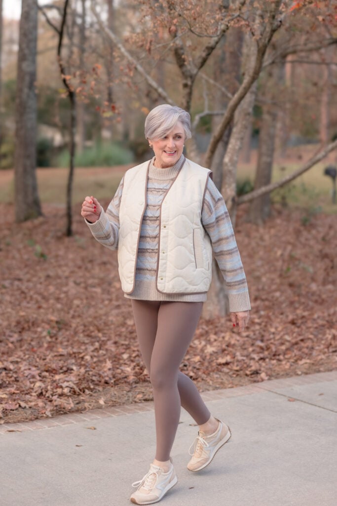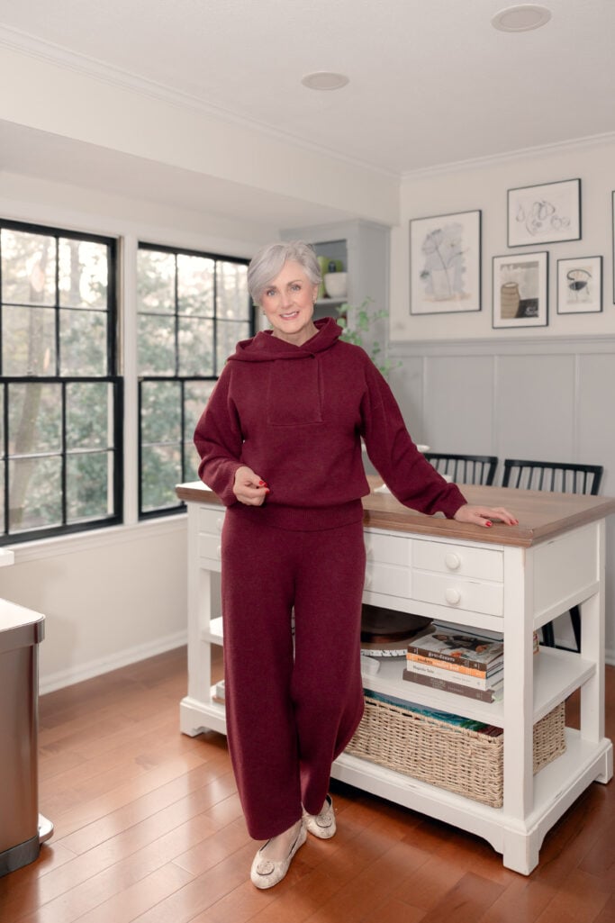 Spanx Air Essentials in festive red is soft, stretchy, and flattering—the full package. Gold hoops, a red lip, and sneakers turn this into a casual holiday outfit. But I like to mix and match, too.
