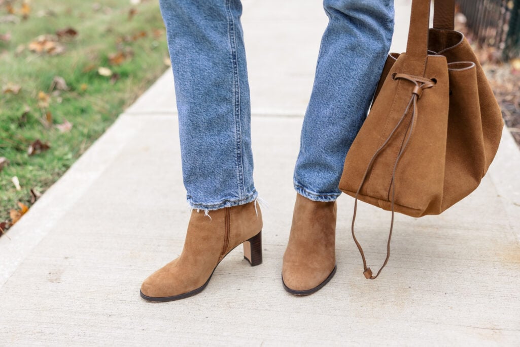 The block heel is the perfect height—substantial enough to give you a little lift and elongate your legs, but low enough to wear all day without discomfort. The suede is buttery soft, and the almond toe shape feels modern without being too trendy.