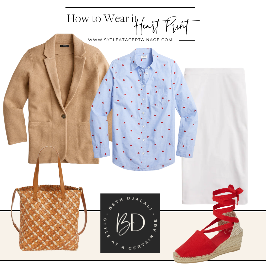 Hello, it’s great to see you today! I don’t need a holiday to wear a bold color or a fun print, but Valentine’s Day is a good opportunity to pull out all the stops and wear fun colors like pink and red (together!), or maybe hearts on our sleeves (literally!). It seems we only see heart-printed clothes at Valentine’s, but I’d like to normalize wearing clothes printed with hearts any time of year. The graphic heart is such a beautiful shape, it connotes love, and who doesn’t want that 365 days a year?