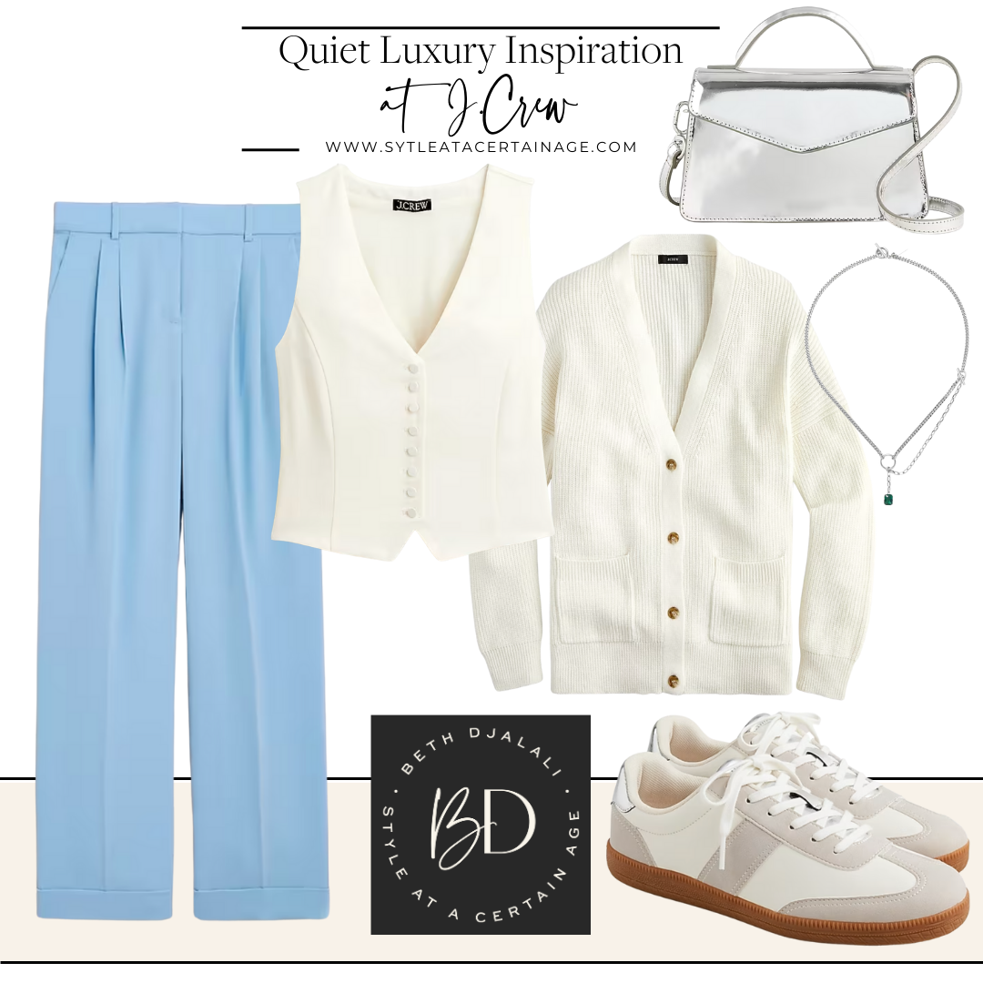 The “luxury” part of the equation refers to the quality of materials, this most often equates to a high price point. But it doesn’t have to. We can think of the “quiet” part as referring more to how these pieces are styled. The main idea is minimal and polished. These types of stylings can easily be achieved by shopping mid-priced brands like J.Crew. We know from personal experience that J.Crew pieces not only have staying power in terms of trending styles, but also in quality.