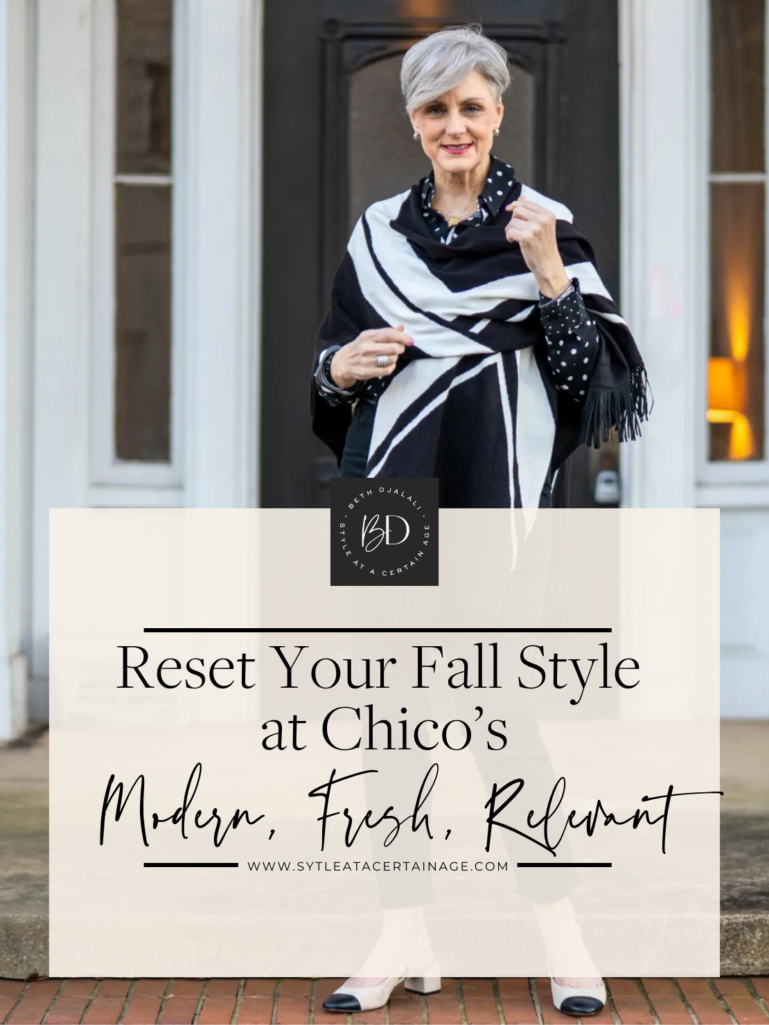 On Thursday afternoons, we often focus on one particular brand to give an in-depth look at what we love from current collections at our favorite brands and retailers. We like to look at how those brands are interpreting both classic and trending styles and provide outfit inspiration to incorporate those styles into your wardrobe so you can look modern, fresh, and relevant. Today, we are looking at Chico’s – the timing couldn’t be better because Chico’s is having a 25% Off Nearly Everything Sale!