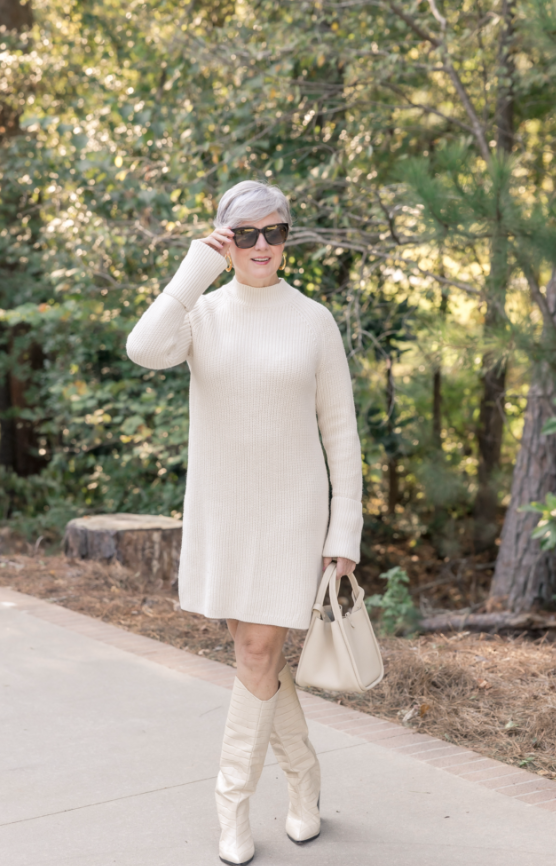 These accessories pair beautifully with the pieces in my Winter White Outfits for Women Over 50 post—the lush green cable knit set looks especially striking against winter white sweaters and cream coats.