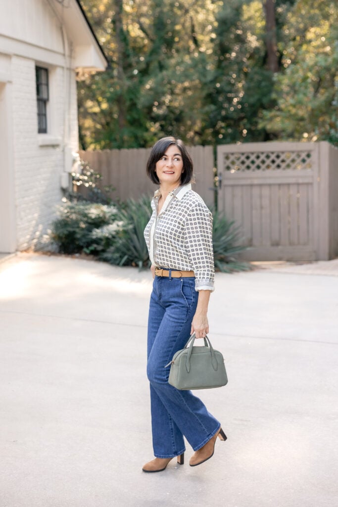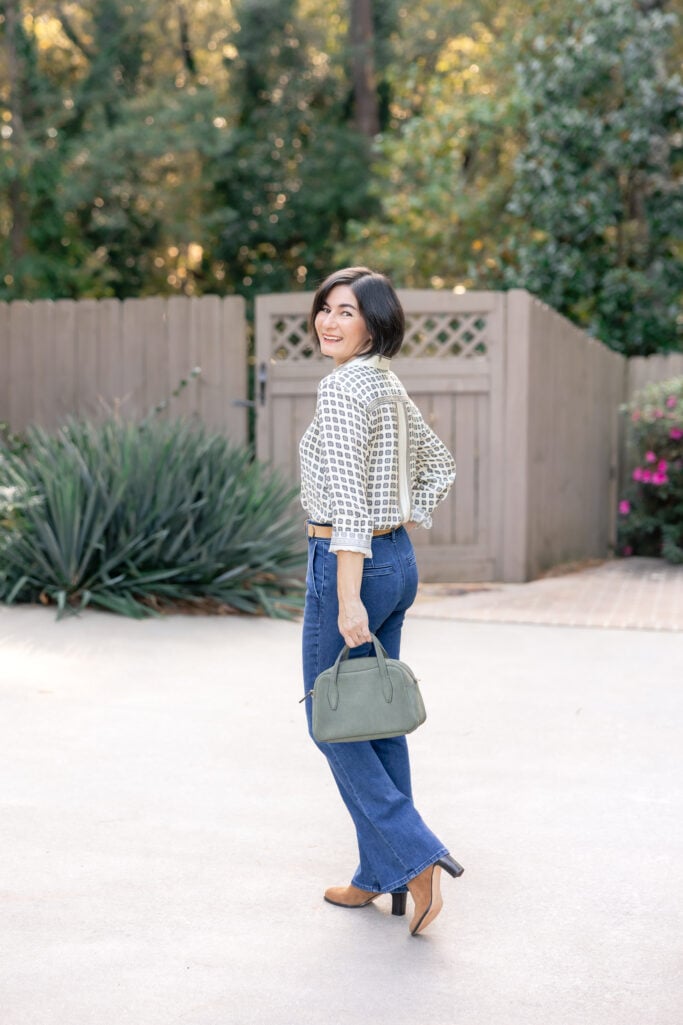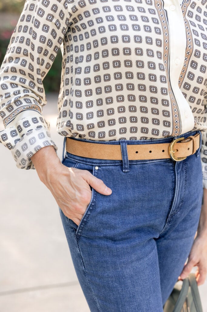 💡 Kelly’s Style Tip: Keep your accessories minimal. A neutral belt, structured bag, and simple earrings go a long way toward creating that clean, confident look that never goes out of style.