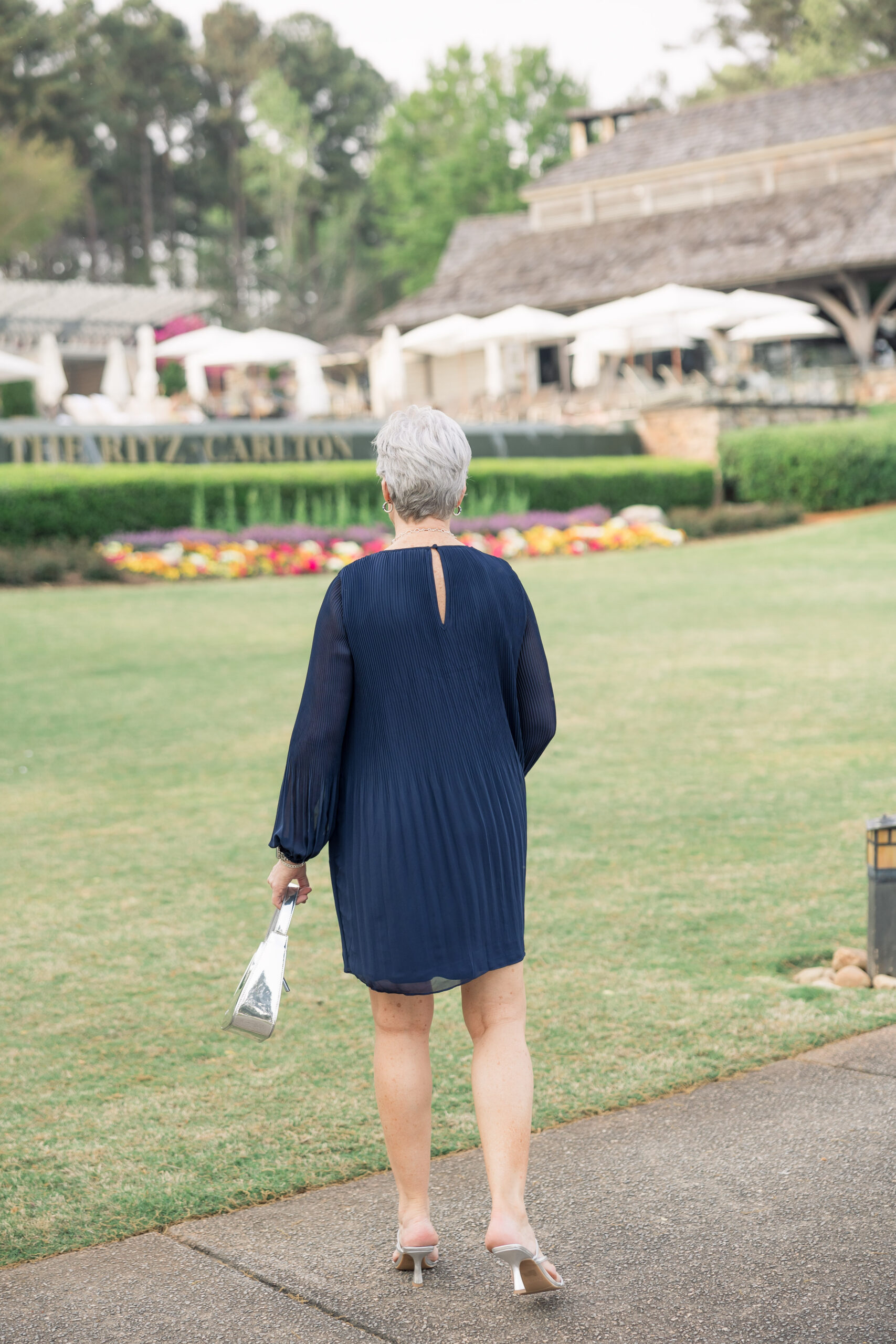 The metallic sandals and handbag are back in action (here and here). What I love about this dress is that it can transition from season to season with ease and will take you to any special occasion headed your way.