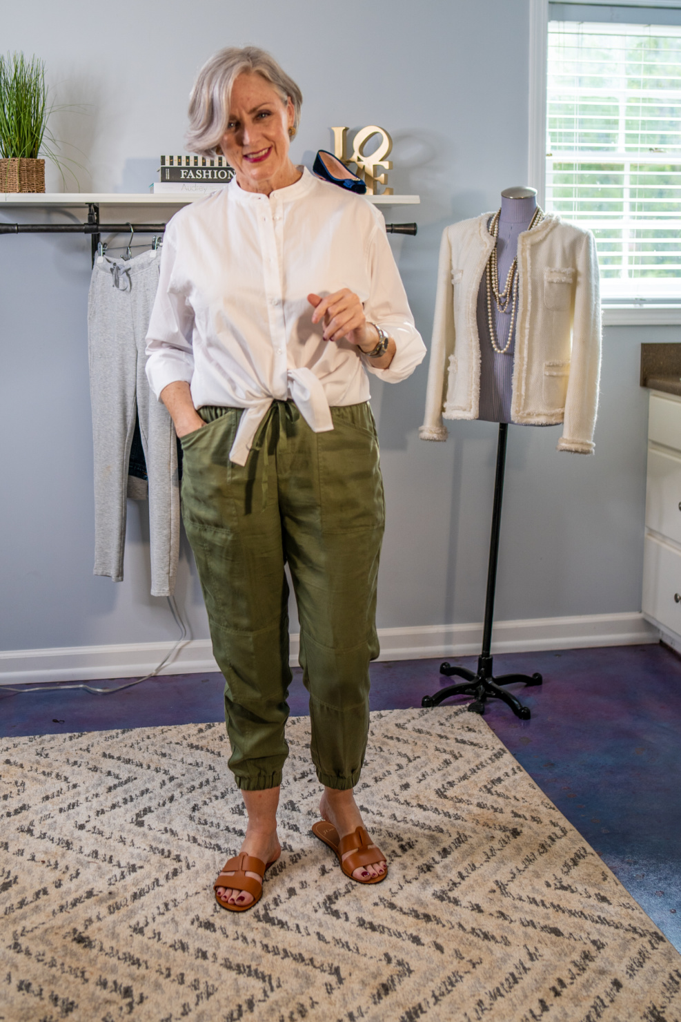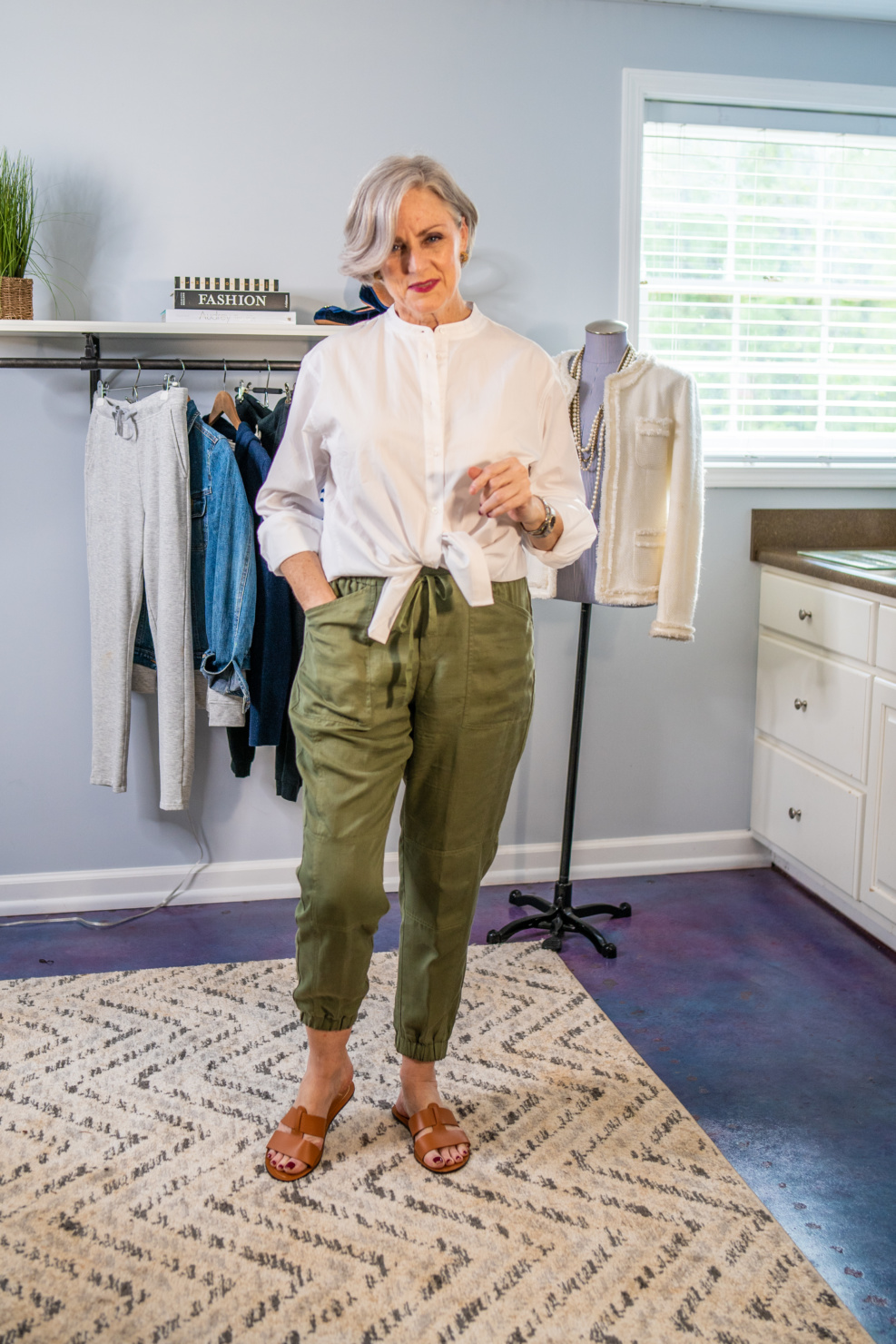 i love my green joggers, maria! they go with just about everything and they’re so comfy to wear.