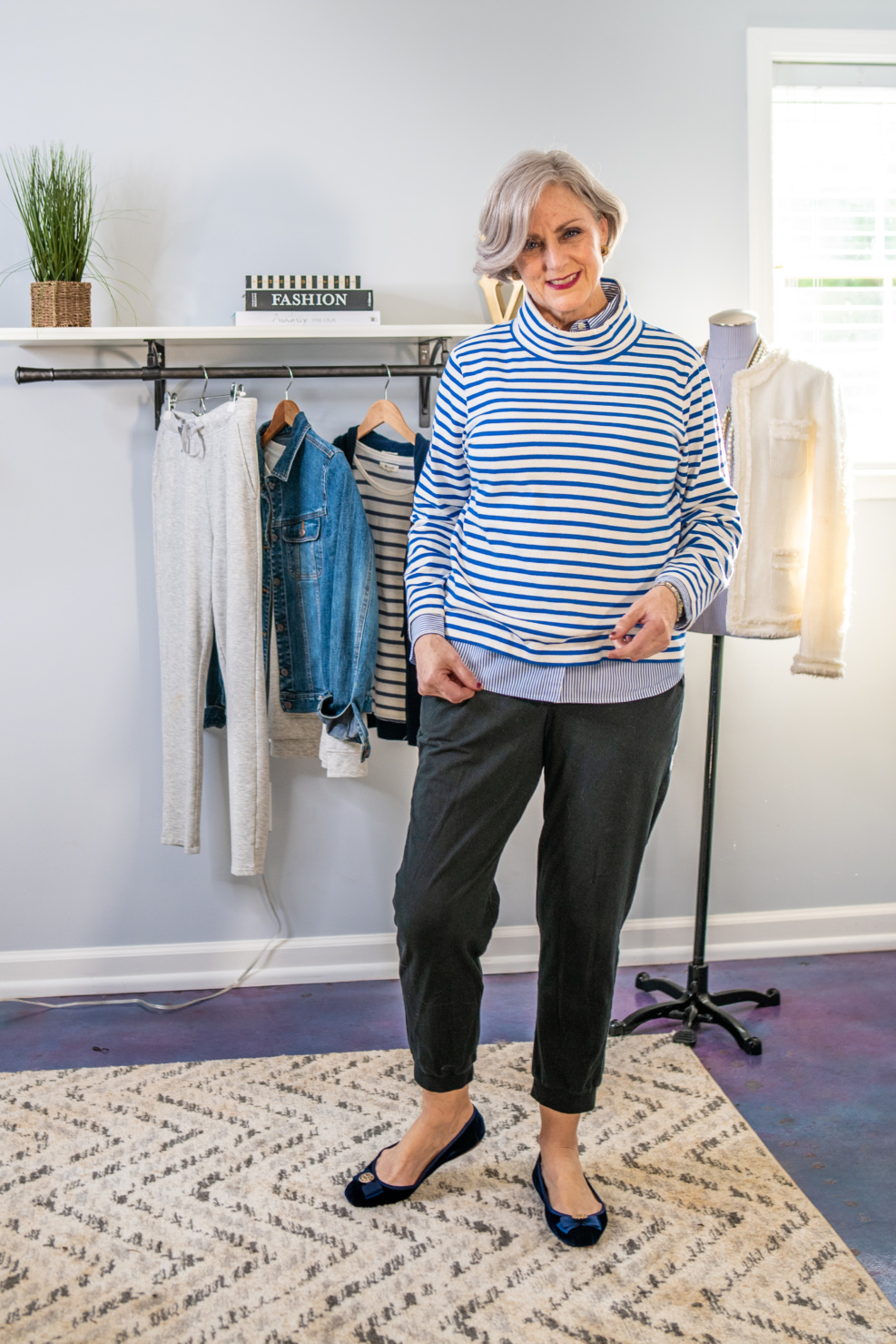 Hi Beth I love the denim jacket and striped t-shirt look, also the grey jogger and sweatshirt, I have just purchased a grey sweatshirt jumpsuit with hood, so stylish and comfy!