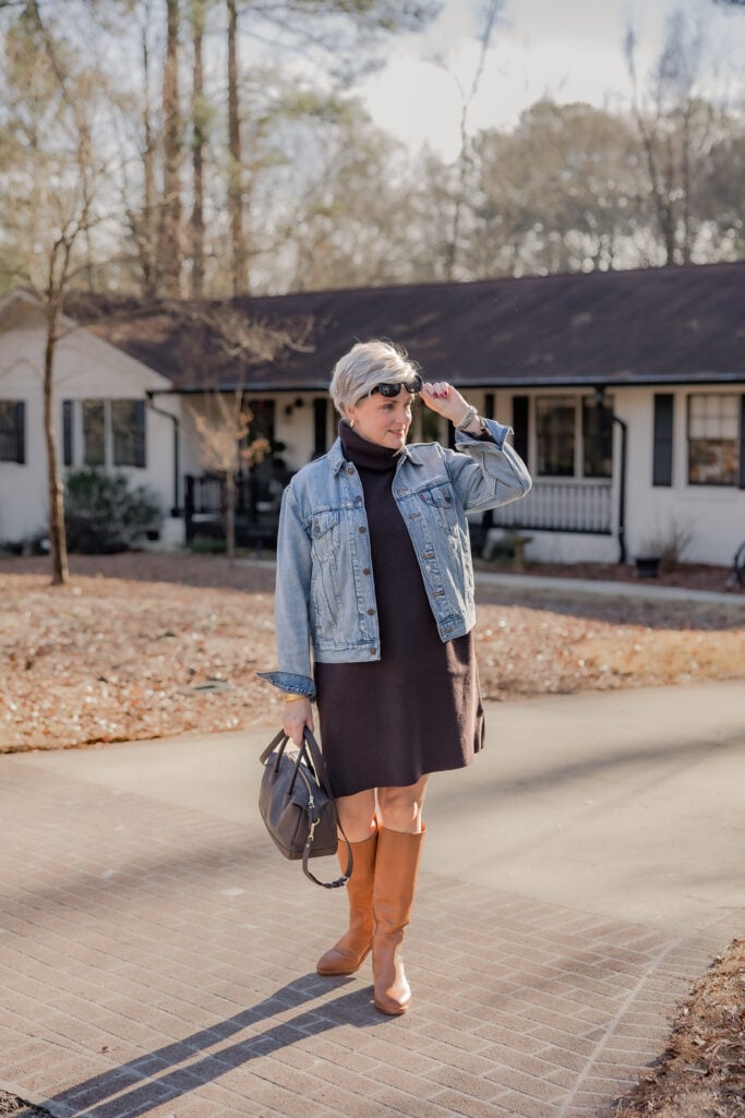 When you want to look put-together with minimal effort, reach for a sweater dress. Pair it with tights and knee-high boots, and you’re ready for anything — from lunch to travel days. Choose ribbed or cable-knit styles for texture and warmth.