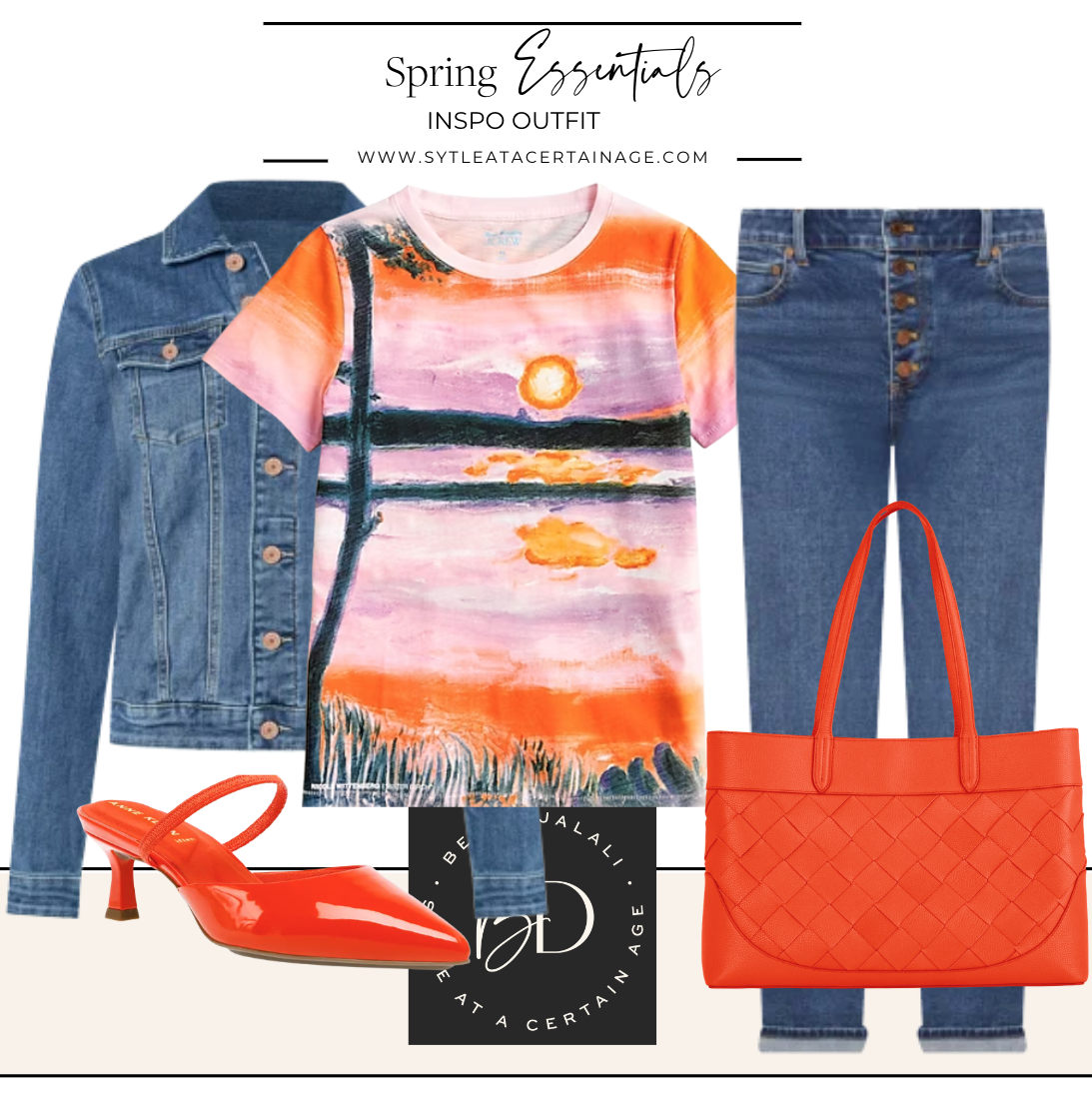 Board: Classic Jean Jacket (Talbots) | Everyday Relaxed Jeans (Talbots) | Iella Convertible Strap Slingback (Anne Klein) | Graphic Tee (Nicole Wittenberg x J.Crew) | Woven Leather Tote (Talbots)