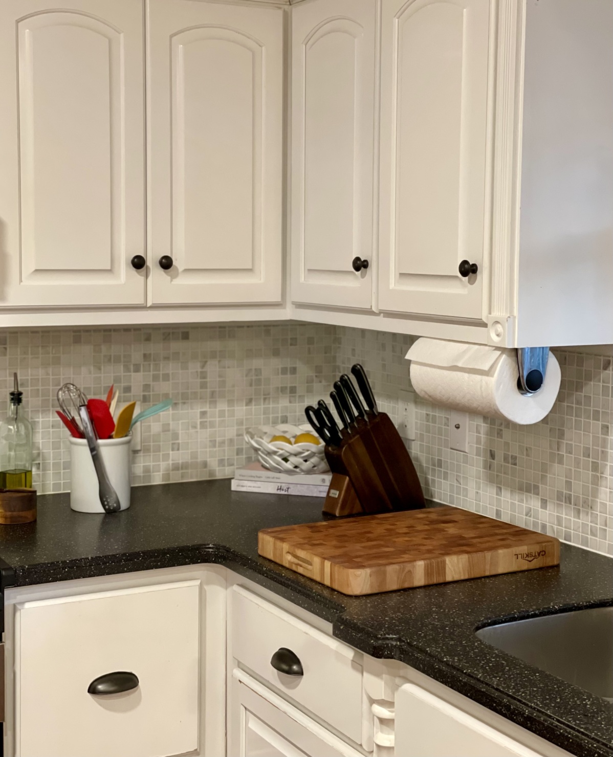 John Boos Butcher Block | Simple Human Wall Mount Paper Towel Holder | Bamboo Drawer Organizer | Bamboo Flatware Organizer | Tall Slim Refrigerator Storage | Short Refrigerator Storage | Ceramic Egg Carton | Similar Kitchen Island  | Windsor Bar Stools | Stainless Steel Kitchen Island | Dough Bowl | Drying Rack | Litter-Robot Self Cleaning Kitty Litter | Comfort Kitchen Mat| Marble Lamp | White Footed Bowl| Pig Lamp