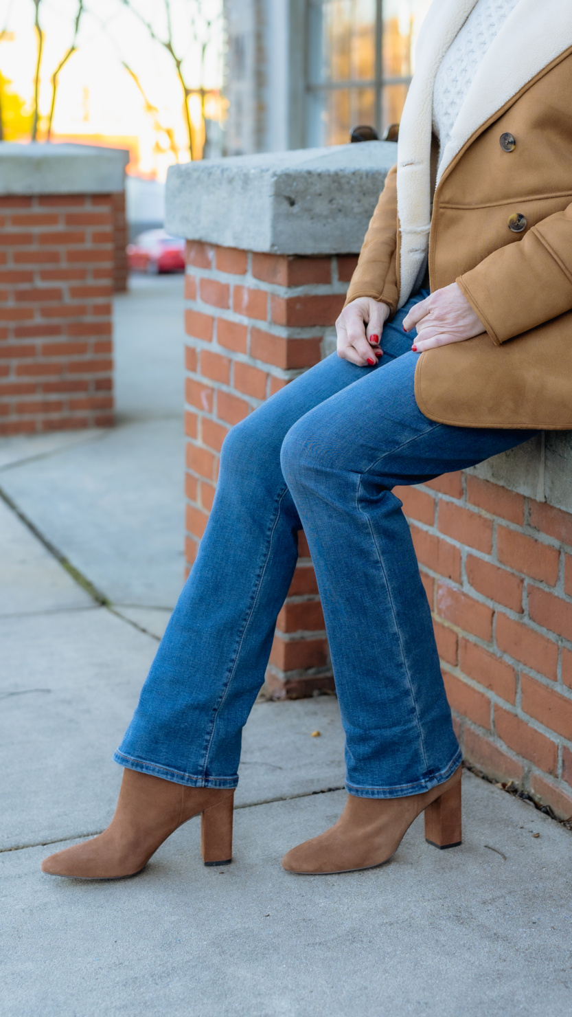 Boot cut jeans and suede boots