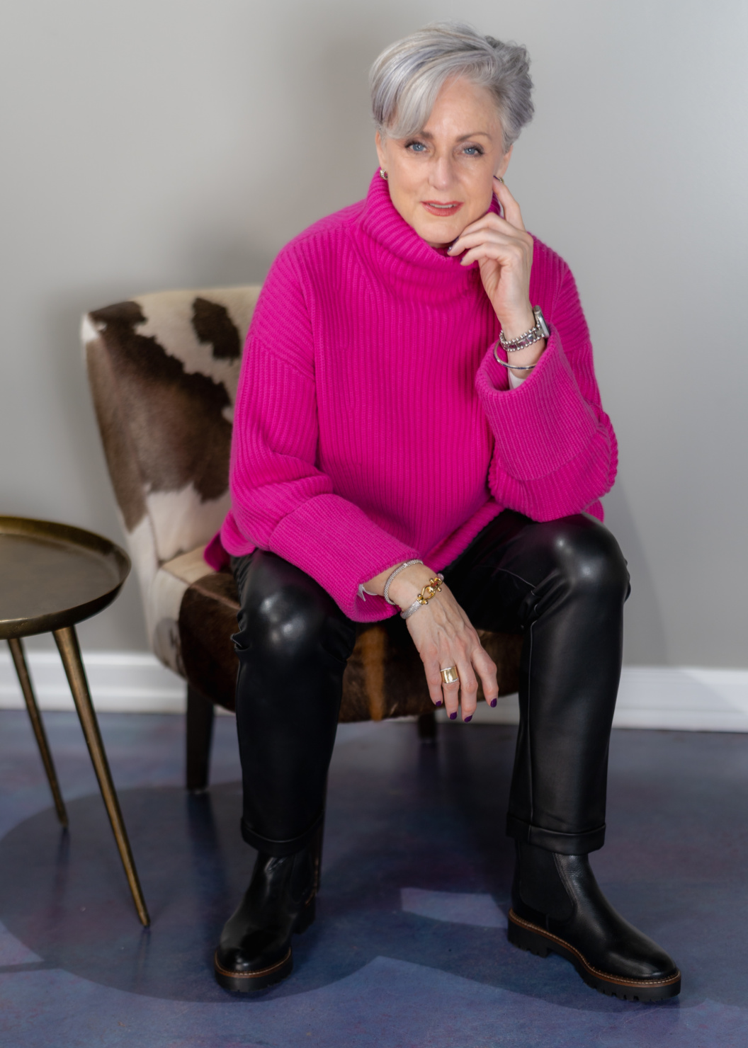 i haven’t changed the colors i wear since going gray over a decade ago. while i understand the philosophy behind a color analysis and know that certain colors look better with my skin tone i’m a big believer in wearing ALL the colors. many women who have gone gray even change their jewelry from gold to silver. if that’s what makes you feel confident then go ahead and switch things up. me? sometimes, i wear silver other times gold and i love to mix gold and silver together.