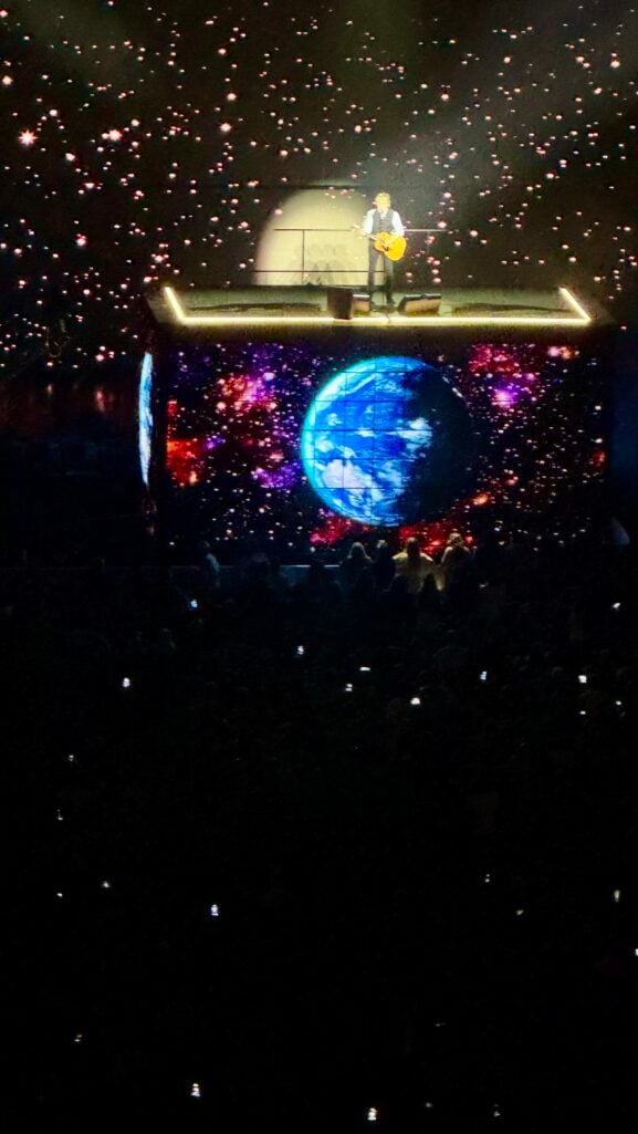 He opened the show with HELP! — written by John Lennon after the Beatles first became famous. It was such a fitting way to start the night — a reminder of where it all began and how far he’s come. From there, the hits rolled in: Band on the Run, Maybe I’m Amazed, Can’t Buy Me Love, and an explosive performance of Live and Let Die that shook the entire arena. Flames shot up from the stage, fireworks lit the rafters, and the crowd roared like it was 1973 all over again.