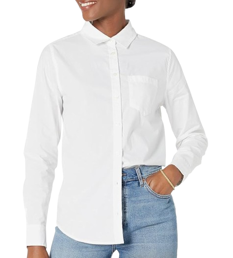 Let’s be honest — sometimes you need a white shirt that you don’t worry about. This Amazon Essentials poplin is surprisingly good for under $25. It’s not going to replace your Brooks Brothers, but for layering under sweaters, throwing on with jeans on the weekend, or keeping as a backup, it more than holds its own.