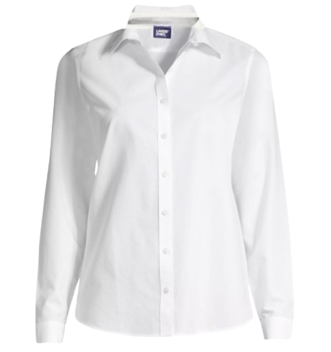 Lands’ End has been quietly making some of the best wardrobe basics for decades, and their Supima cotton shirt is a standout. It’s truly no-iron, comes in regular, petite, and plus sizing, and the fabric has that smooth, quality feel. If you love Brooks Brothers but want something at a friendlier price, start here.