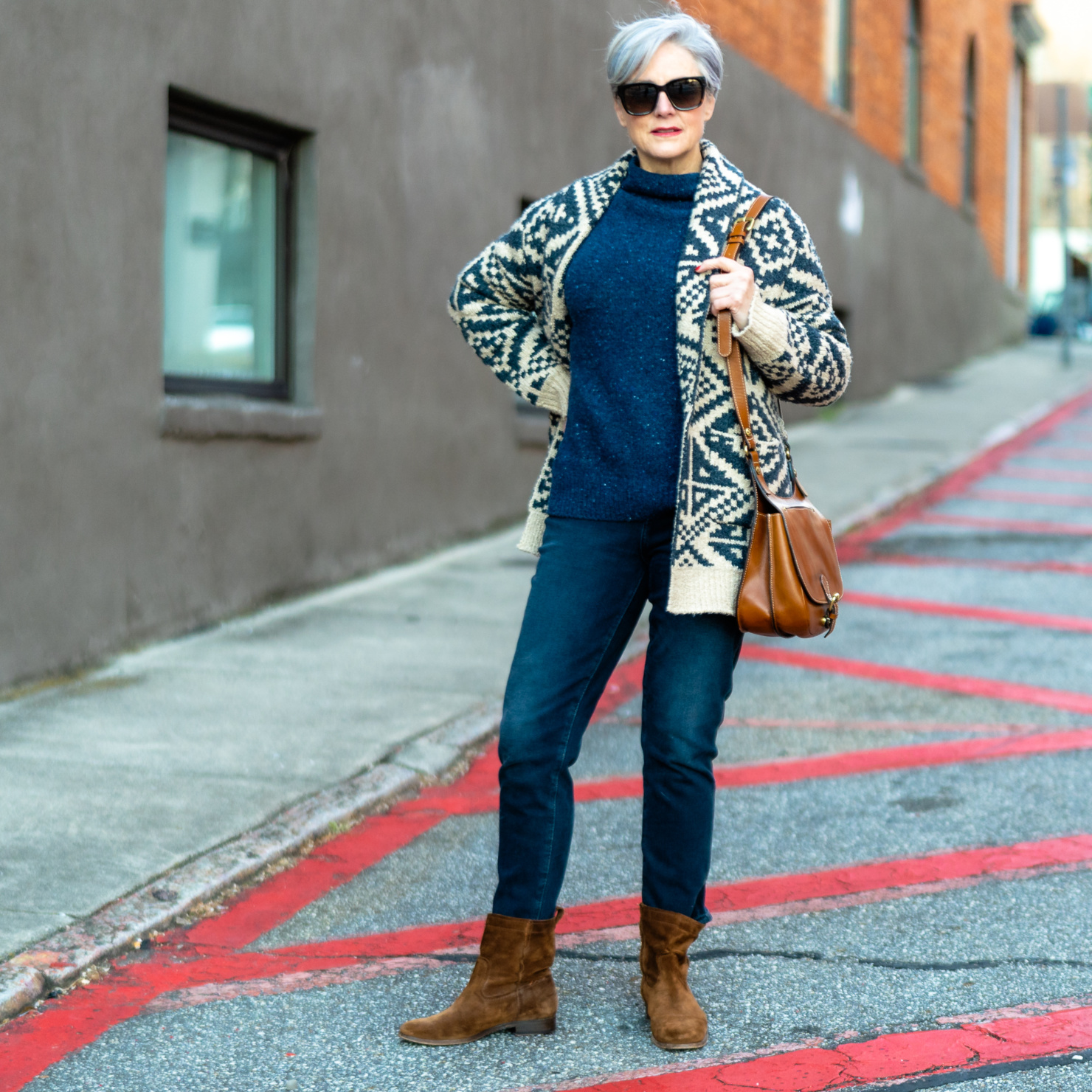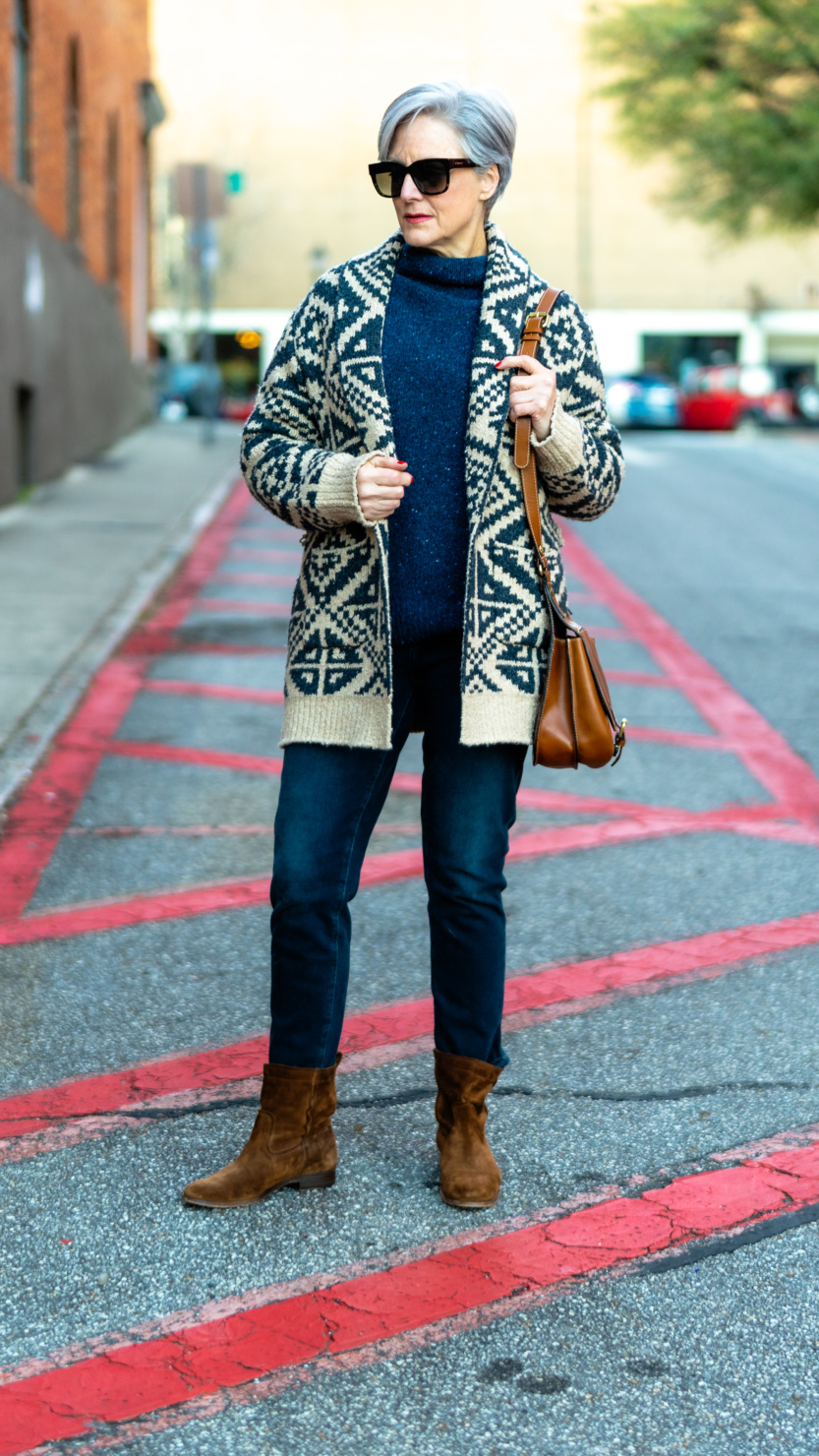 Cardigan (Banana Republic) | Sweater (Vince) | Denim (Banana Republic) | boots (similar) | boots (similar 2) | handbag (Patricia Nash) | sunglasses