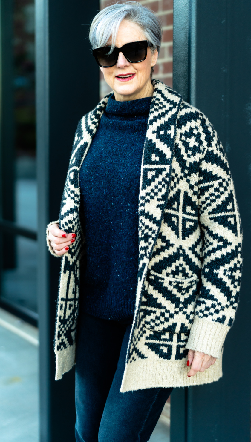 The bag and the cardigan are to-die-for. My only hesitation on the cardigan is that although it is beyond perfect for Yellowstone/Western looks, I live in the heart of downtown Chicago, and once I got home, the cardigan would work less well with my overall wardrobe. I suppose I could always by a charming ski chalet in Aspen . . . .