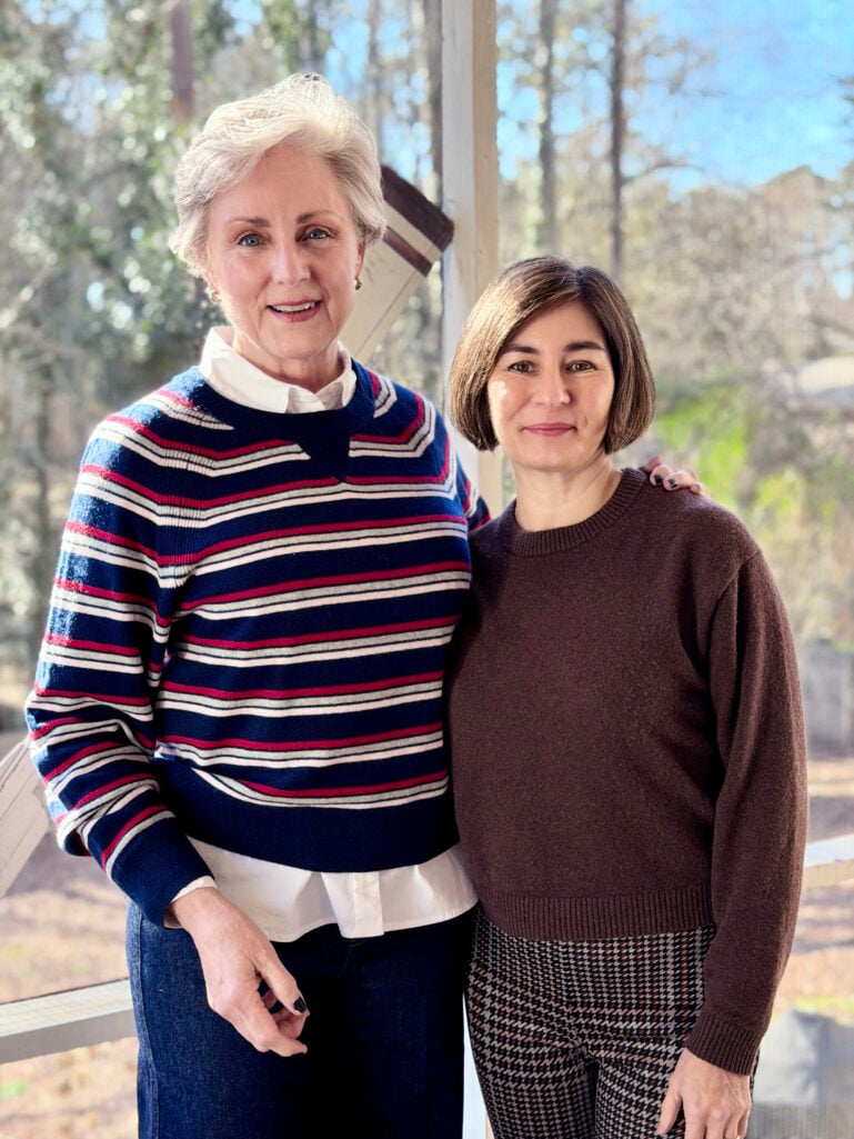 I’ve always loved a good striped sweater, and this Cashmere Crewneck in navy, red, and cream feels like a winter classic. There’s something about the combination of stripes and a crisp white collar peeking out that just makes me happy — it’s preppy without being too precious. I’ve layered it over my No Iron Stretch Shirt (a wardrobe hero, honestly) and paired it with my Spanx EveryWear Wide Leg Jeans in a deep indigo wash. The wide leg silhouette feels modern and relaxed, and these jeans have just enough stretch to keep you comfortable through dinner and beyond.