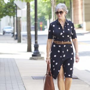 I love the blouse you’re wearing with the denim jacket, top photo. Very cool, the way it’s cut longer in the back. And I always enjoy seeing your Oscar. My husband and I adopted a large rescue dog (Coco is mostly German Shepherd, with retriever mixed in) after we turned 60. Best decision we ever made. Dogs get us out to walk daily, and they bring so much love to a family.