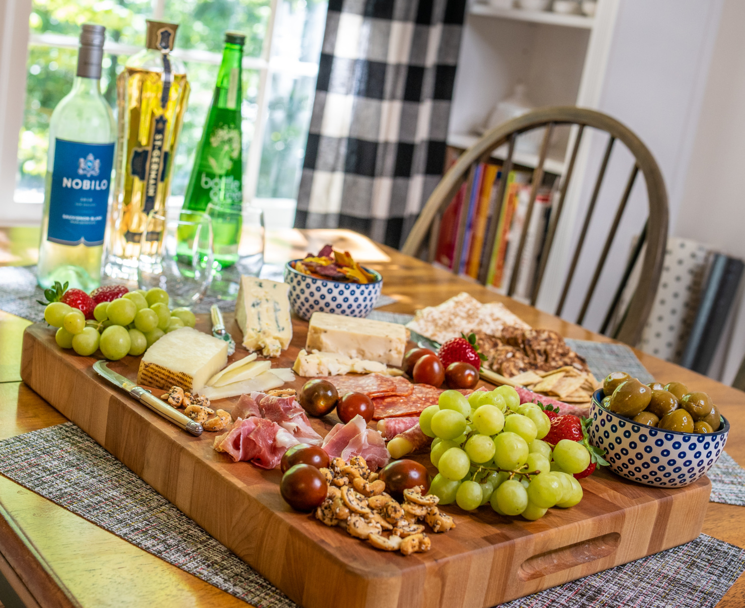 putting together a charcuterie platter and cheeseboard is a great way to clear out the cheese drawer in your fridge! it’s simple to put one together and it can be an easy dinner. if you want something more substantial than crackers, you can put out small slices of bread and condiments to make finger sandwiches.