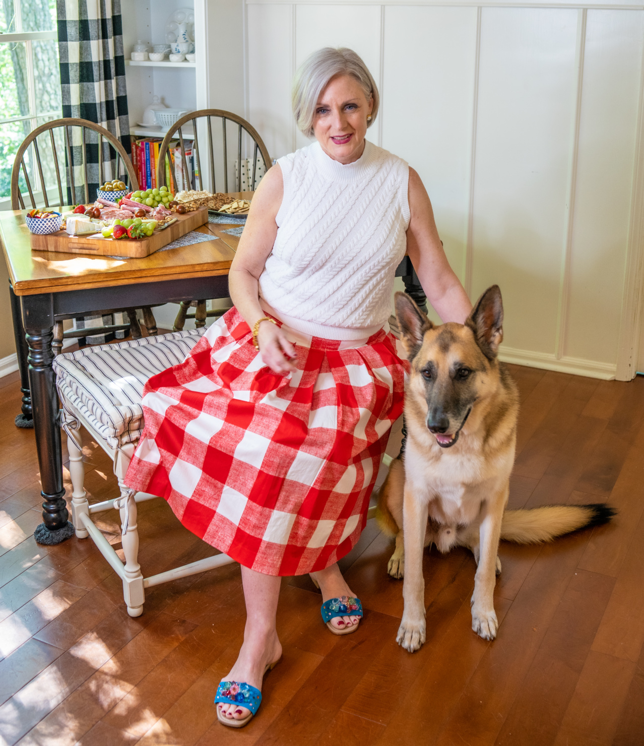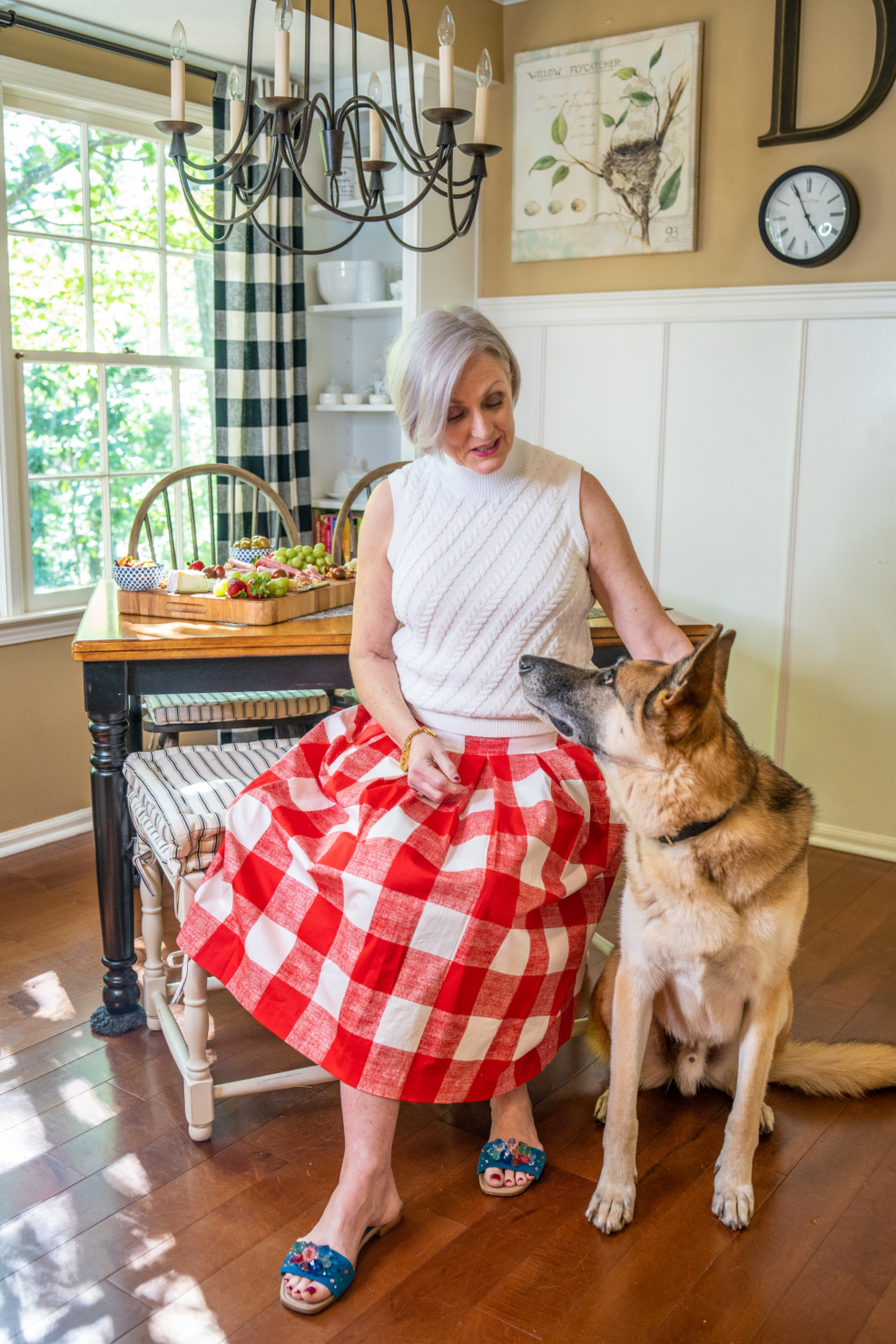 i am picnic ready today with this adorable gingham skirt from Talbot’s. it’s great that warmer weather is coinciding with my knee surgery because it is so much more comfortable to wear a skirt or shorts!