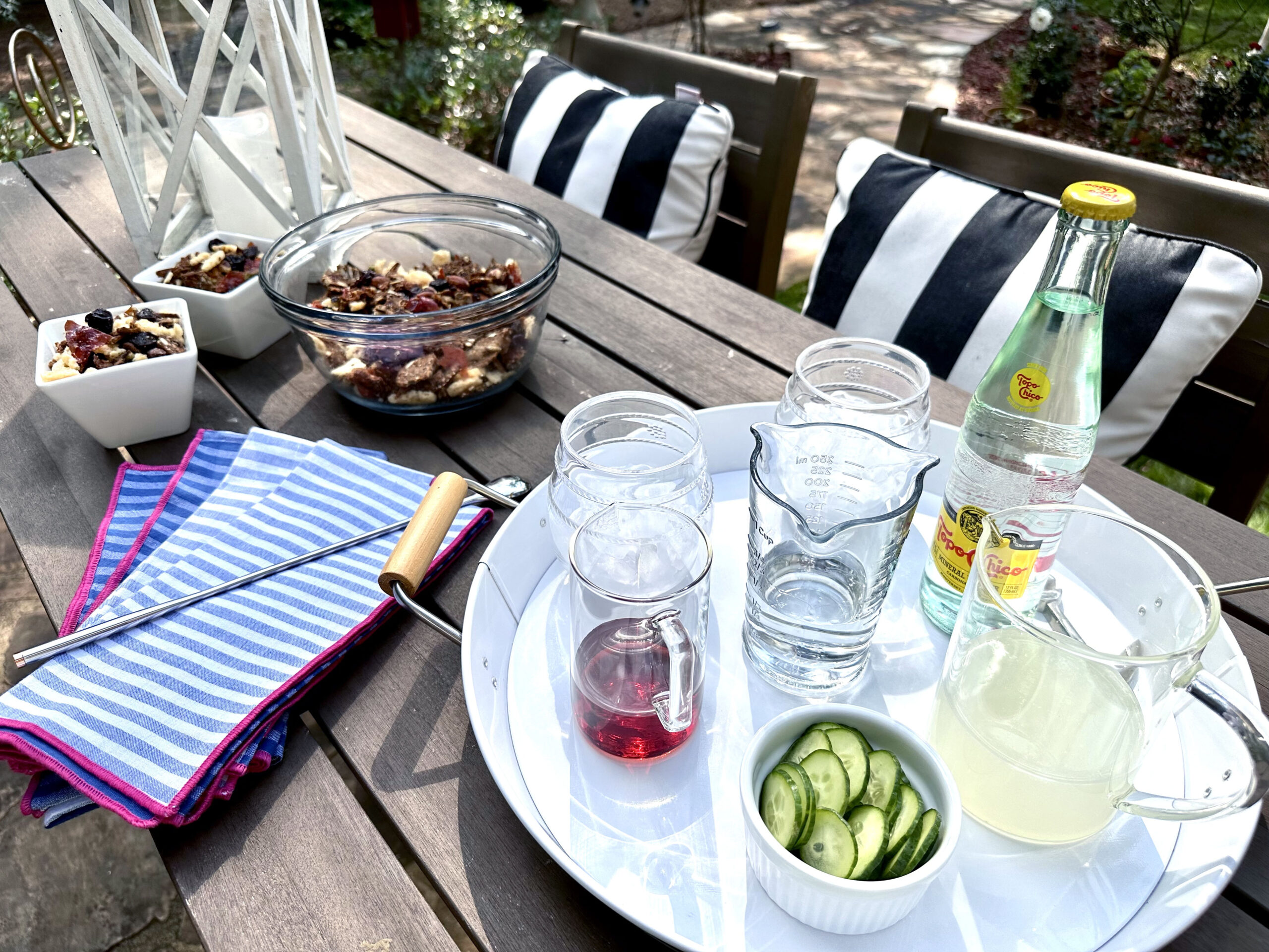 Similar Napkins | Juliska Acrylic Stemless Wine Glasses | Similar Serving Tray | Similar White Serving Tray | Square Appetizer Bowl Set | Glass Measuring Pitchers | Glass Mixing Bowl