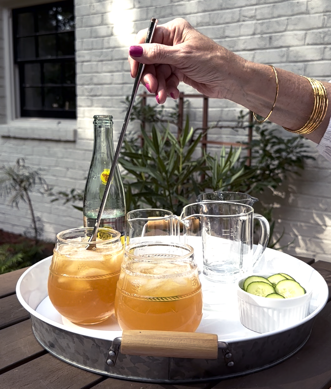 Since it’s Friday, y’all know Oscar will make an appearance! And Kelly is whipping up another delicious bit to eat, although this one is soooo easy to make and perfect to have on hand if guests stop by and you just want to share something to nibble on. I love the name of the cocktails this week – Porch Swing. It reminds me of my childhood and countless hours spent on my Nana’s front porch swing. I’ve been wanting to add one to my front porch but there isn’t enough roof overhang to accommodate one. I’m still trying to figure that one out. So come on in and stay awhile, ‘cuz we’re kicking off the weekend!
