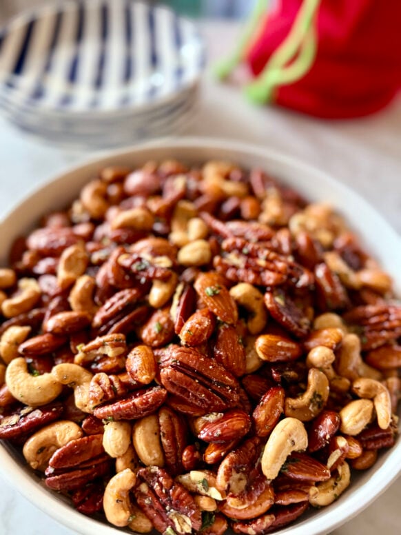 December is busy, and there’s absolutely no shame in a well-chosen shortcut. If you love the idea of having spiced nuts on hand but don’t have time to make them from scratch, Trader Joe’s is your friend. Their mixed nut selection is excellent and affordable, and they often carry seasoned varieties during the holidays. Grab a container, pour them into a pretty bowl, and call it done. The goal is enjoying the season, not exhausting yourself.