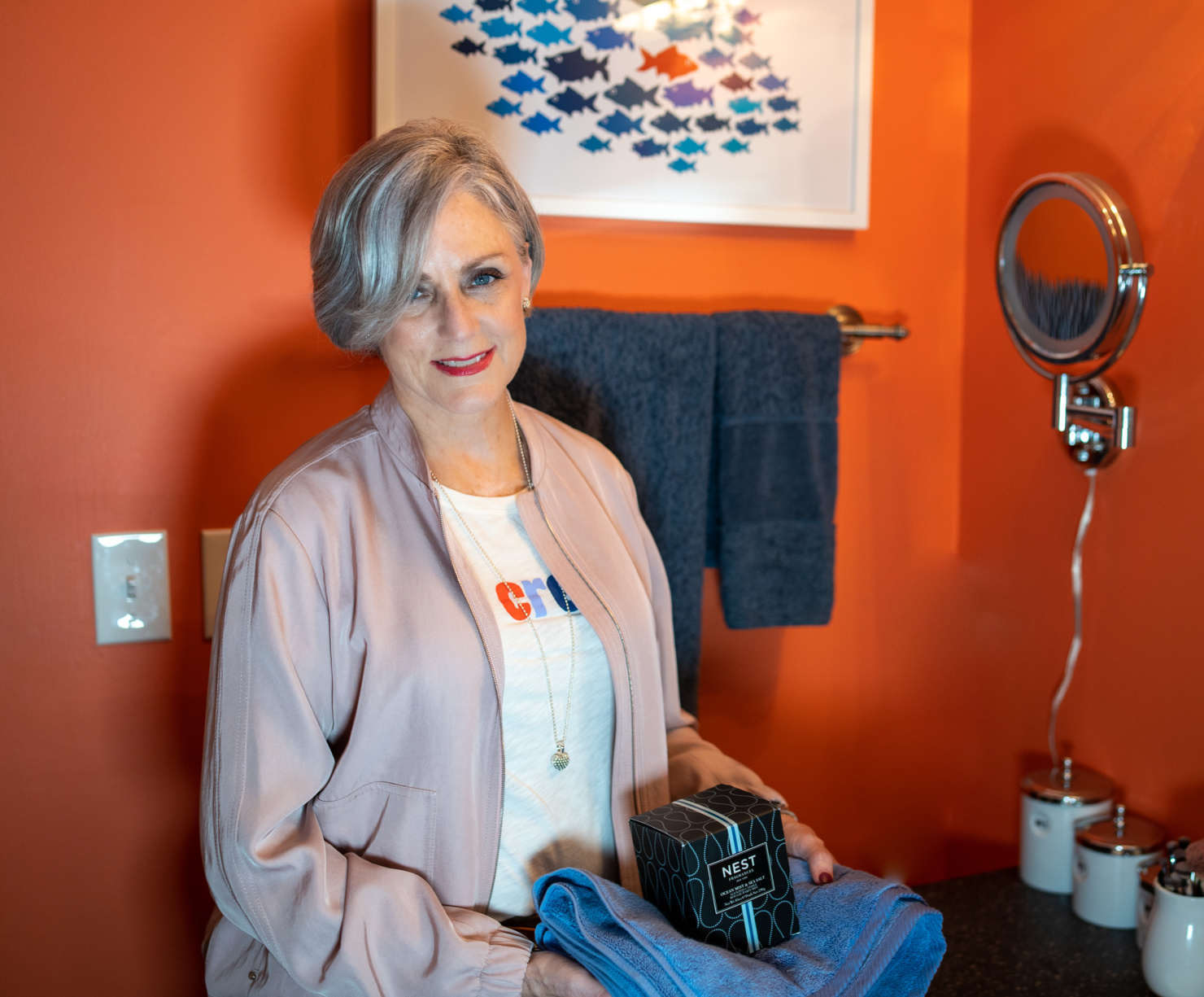 freshening up your powder room, guest bath or even the master bath doesn’t have to break the bank. it can be as simple as adding a soothing candle in your favorite scent. one of my go-to candles any time of year is Nest that infuses my home with a lasting fragrance. another luxury that doesn’t cost an arm and a leg is a bath mat. there are lots of brands to choose from but Matouk gets my vote as their mats are soft and luxurious but dry quickly.