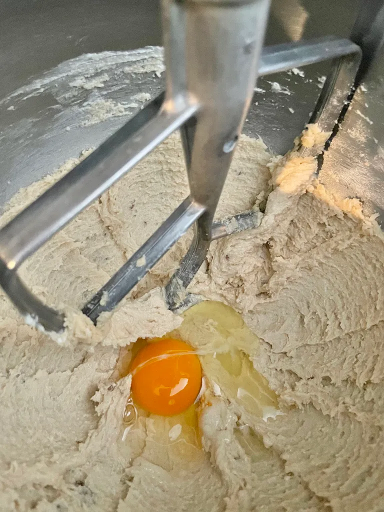 - To the creamed butter mixture, add one egg at a time, mixing between each egg. Scrape down the sides of the bowl as needed to fully incorporate the eggs. Then beat in the vanilla extract.