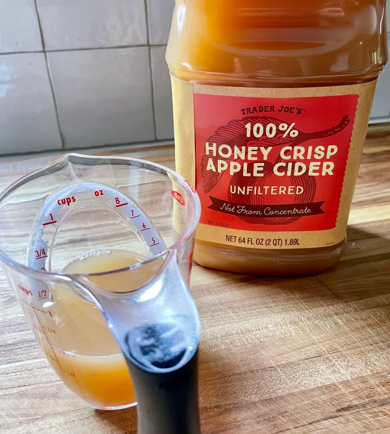 - Add the dry ingredients on low speed and mix until the dry mixture is fully incorporated. With the mixer running on low, pour in the apple cider in a slow and steady stream. Continue mixing until the apple cider is fully incorporated. Scrape down the sides and give it a few mixes by hand to ensure you have a smooth, well-mixed batter.