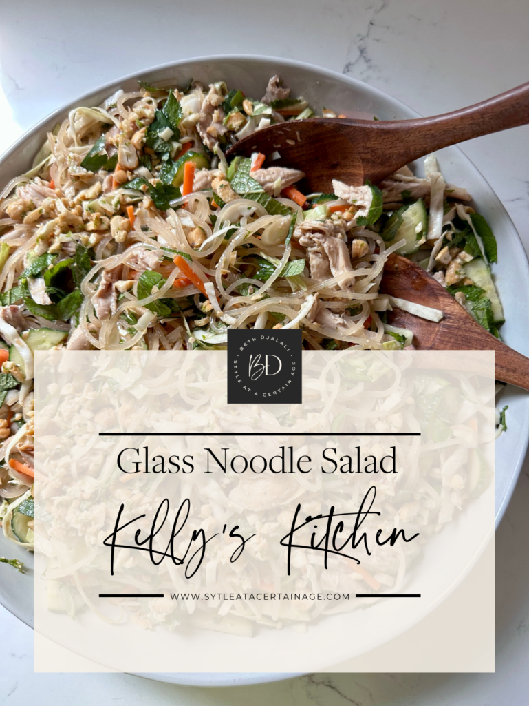Hello and welcome to Kelly’s Kitchen! Today is the first post of the new Kelly’s Kitchen, featuring a fresh new recipe each Sunday evening. Today’s recipe is a really simple main dish salad, or a great side for a barbecue or potluck get together. Glass noodles are a type of noodle made from mung beans or sweet potatoes. They are common in Korean cooking, and while they don’t have much flavor on their own, they add great texture to all kinds of dishes – plus they are gluten-free! So let’s get right to this Glass Noodle Salad!