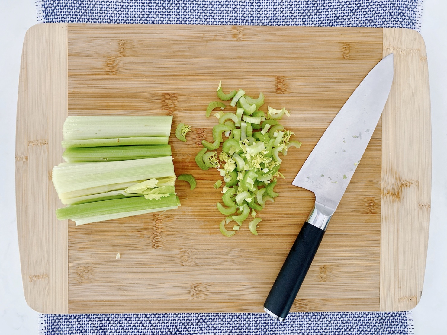For all the weird stuff I might throw into a chicken salad, it always must contain celery. So we start there.