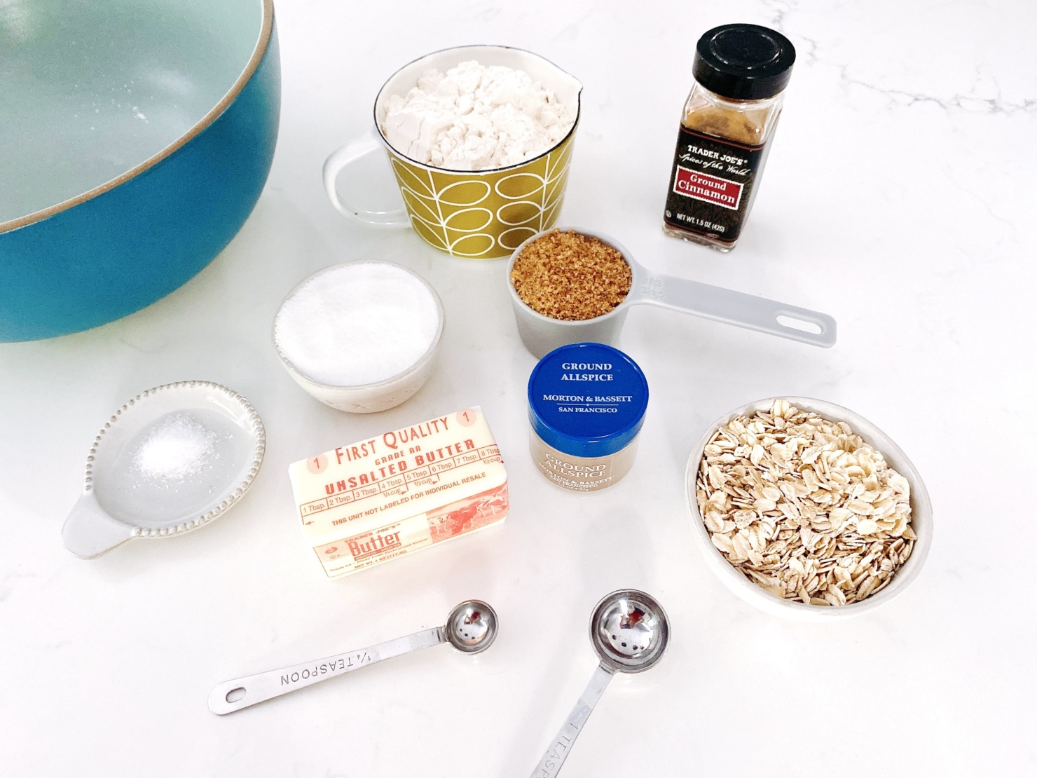 Spread the crumble on a rimmed baking sheet and bake at 350 degrees for about 15 minutes. The crumble won’t change color much, but if you poke a crumble and it’s solid, it’s done!