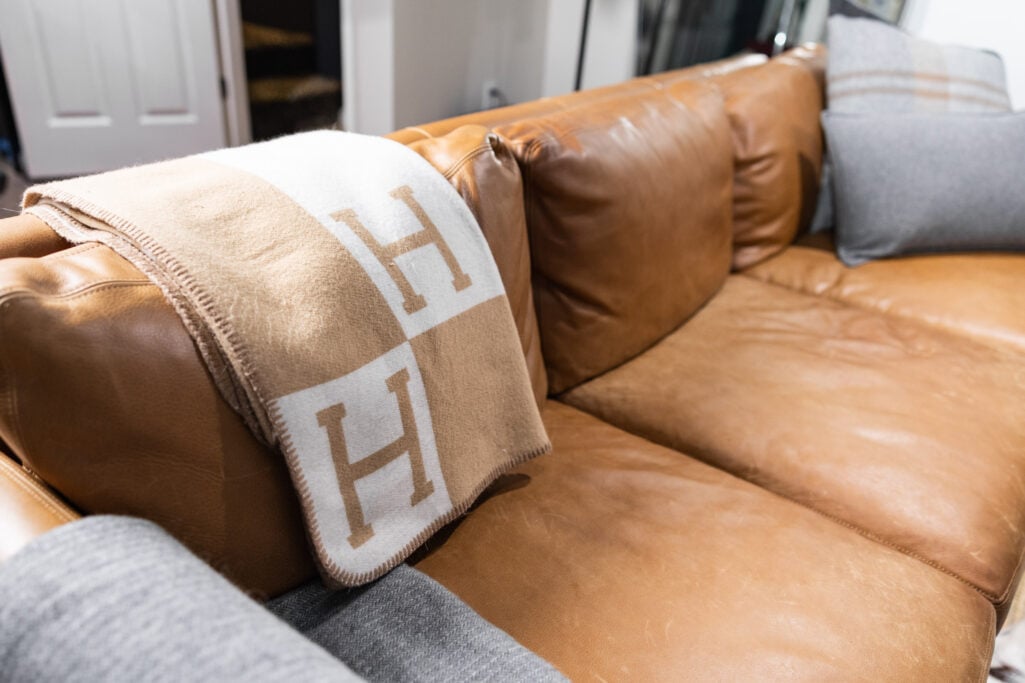 The other side of the room has a modern Ralph Lauren vibe—warm leather, rich texture, and that tailored-but-relaxed energy I’ll never get tired of.