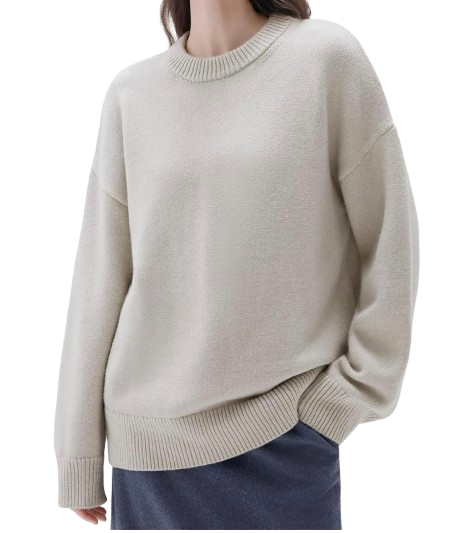 Why It Works: An oversized crewneck in a cashmere blend gives you that luxe, cozy feel without the hefty price tag of pure cashmere. The relaxed silhouette is forgiving and flattering—it skims rather than clings—and the softer drape elevates it beyond a basic pullover. This is the sweater you’ll reach for every time you want to look polished but feel like you’re wrapped in a blanket.