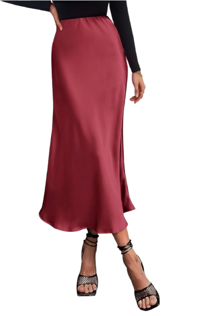 Featuring an A-line Silhouette and an elastic waist, this satin midi slip skirt comes in a variety of colors and is perfect for all seasons.