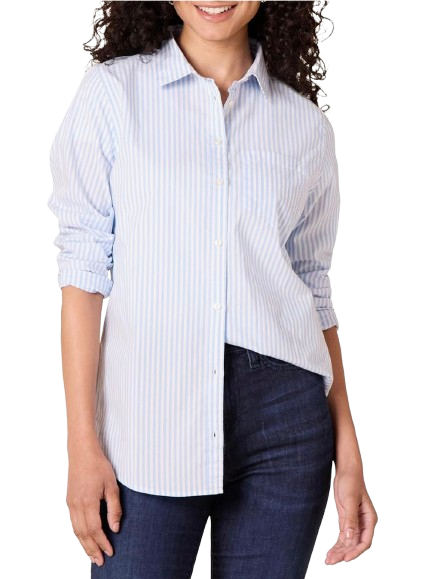 Why It Works: A striped button-down is the ultimate transitional piece—classic, timeless, and endlessly versatile. It works as a layer under sweaters now and as a standalone top in spring. Plus, stripes are always in style.