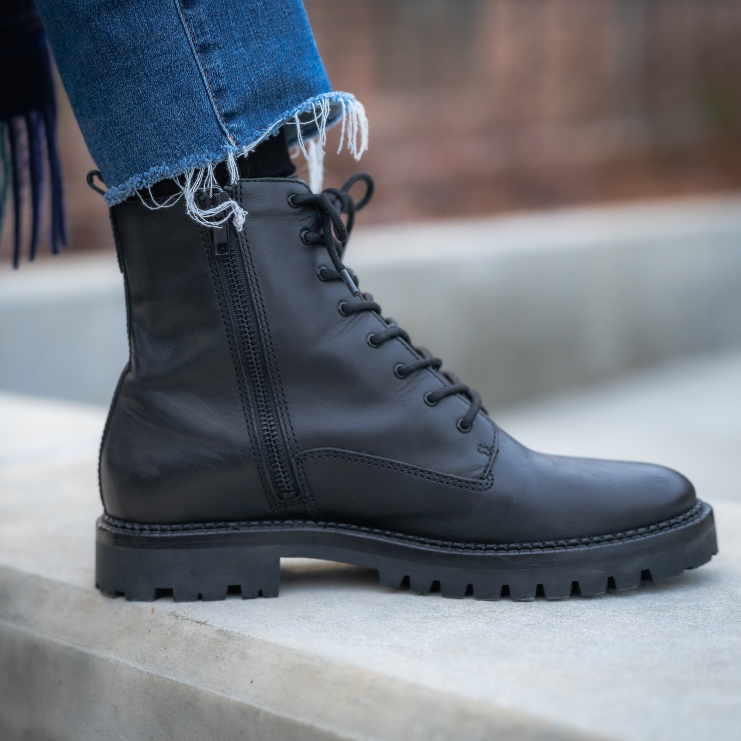 Here, I went with a pair of Vince boots, and you can never go wrong with a pair from Frye, arguably the best winter boots. But if you’re looking for a more affordable option, check out these WEARELLAS combat boots.