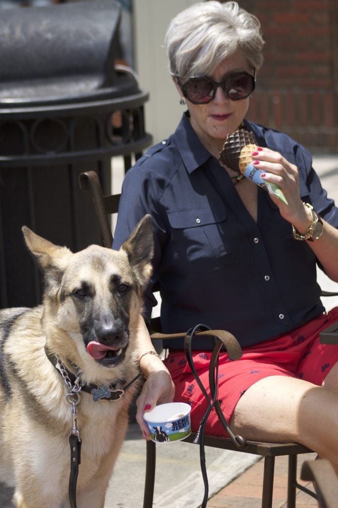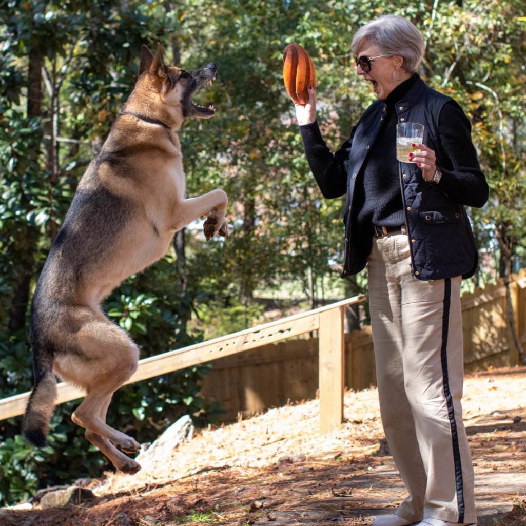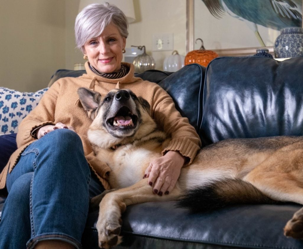 He started appearing in the background of outfit photos. Then he’d wander into frame during filming. Before long, readers weren’t just asking about my jacket or my boots—they wanted to know about the handsome German Shepherd stealing the show.