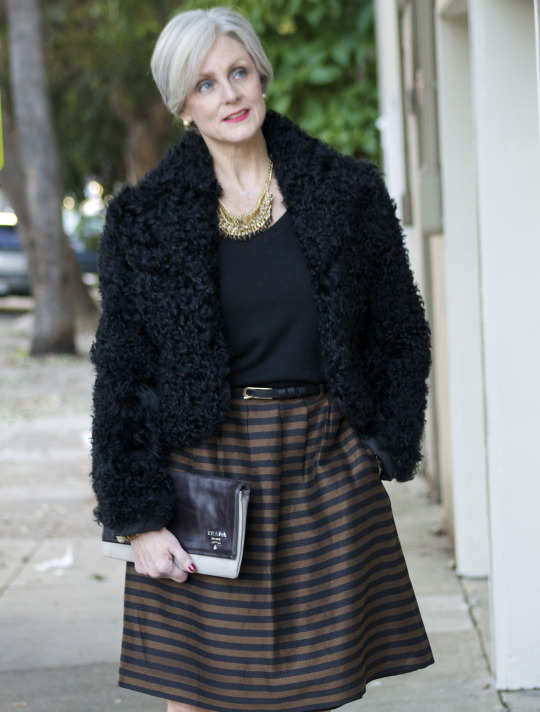 fur, and faux fur continue to be on trend. and when do stripes ever go out of style? skirt Madewell (similar here and here); jacket tailor-made (similar here and here)