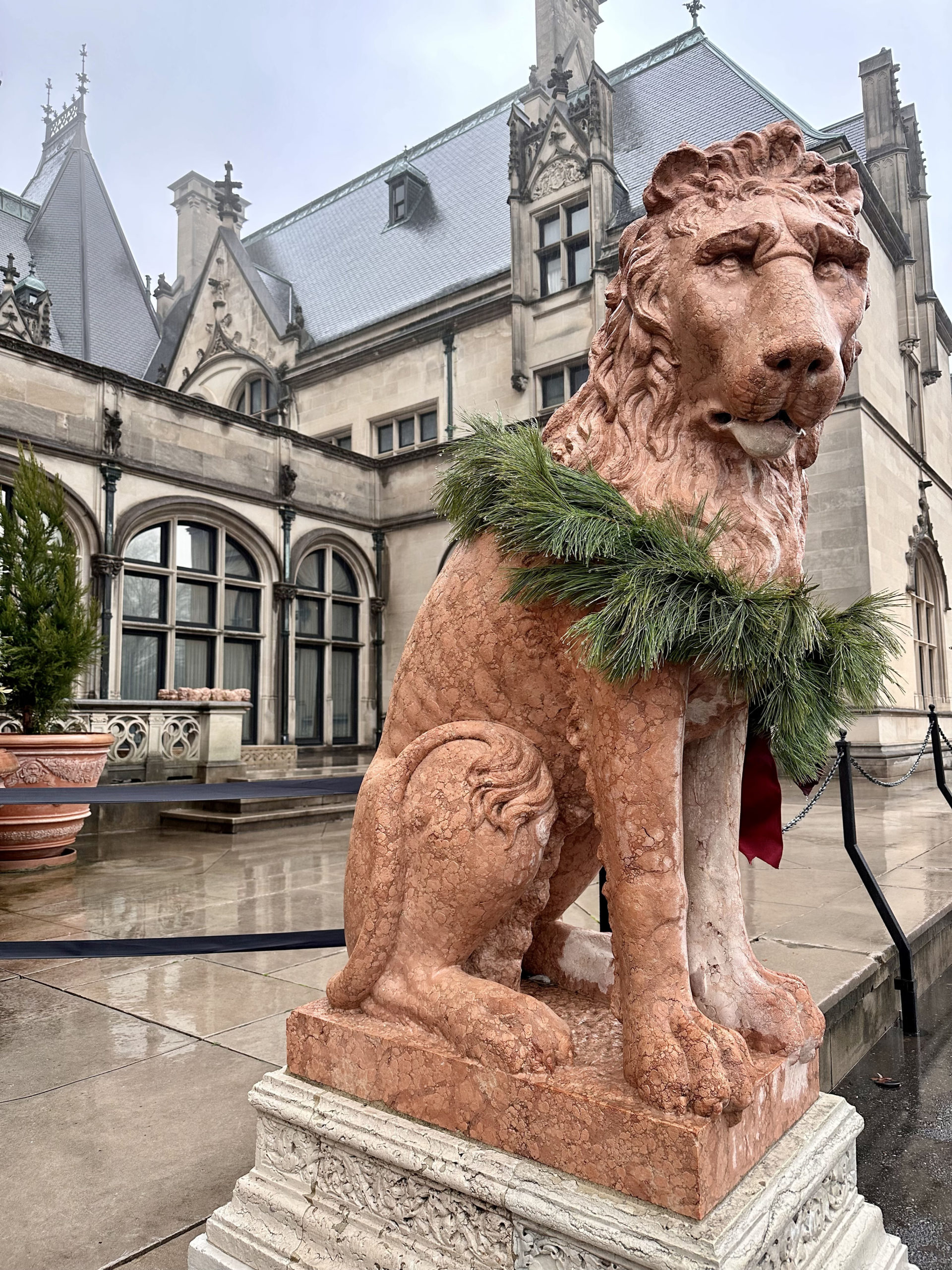 When you tour the Biltmore, you’re greeted by the handsome pair of lions guarding the front door. Even they are decked out for the holidays!