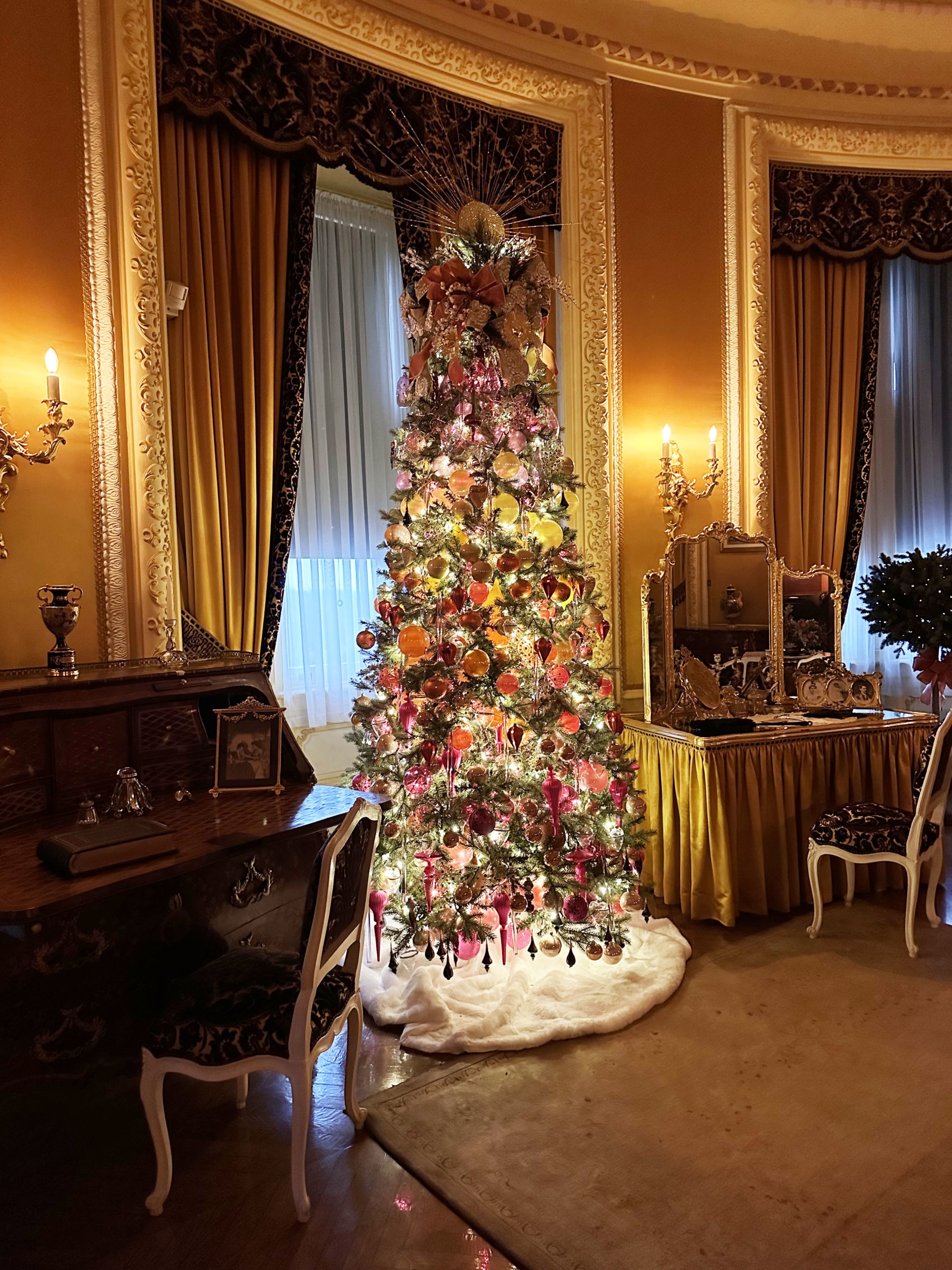 Every room we saw on the tour is gorgeous in its gilded age design and furnishings. Each room is decorated for Christmas with beautifully decorated trees and garland.