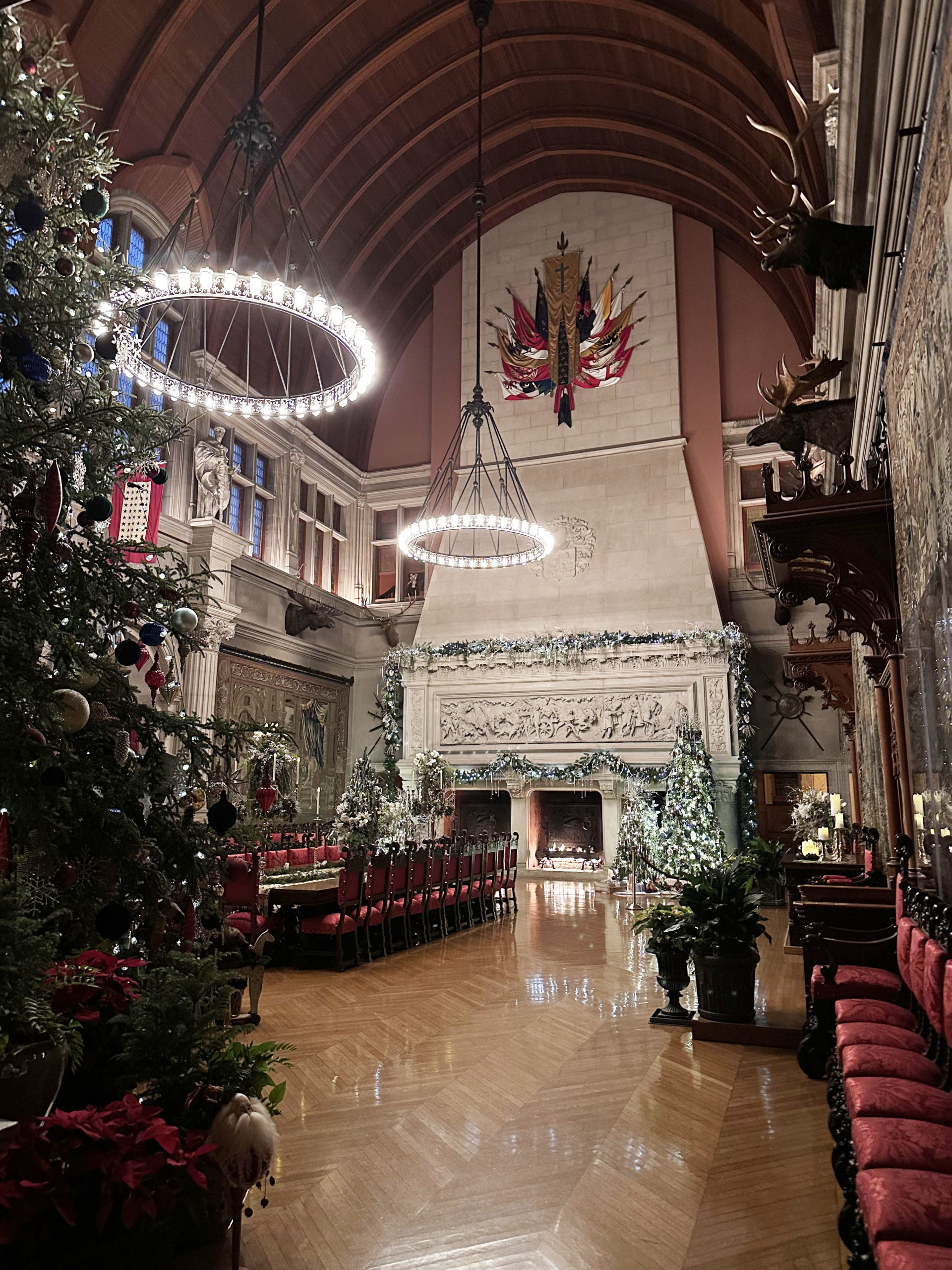 Happy Holidays! With Christmas just 10 days away, I thought it would be fun to share some holiday inspiration from the famous Biltmore House in Asheville, North Carolina. Alex and I spent a few days last week with Alex’s brother and his fiancé in Asheville. We enjoyed some great meals at local restaurants, but the star of the visit was the Biltmore. The Biltmore is an impressive home any time of year, but when it’s decorated for Christmas, there is a magic to it that can’t be beat.