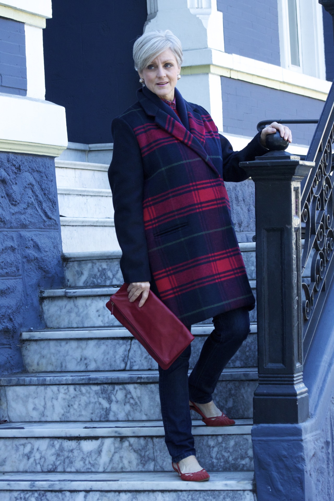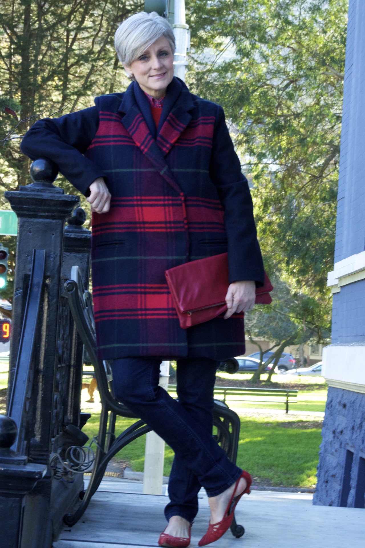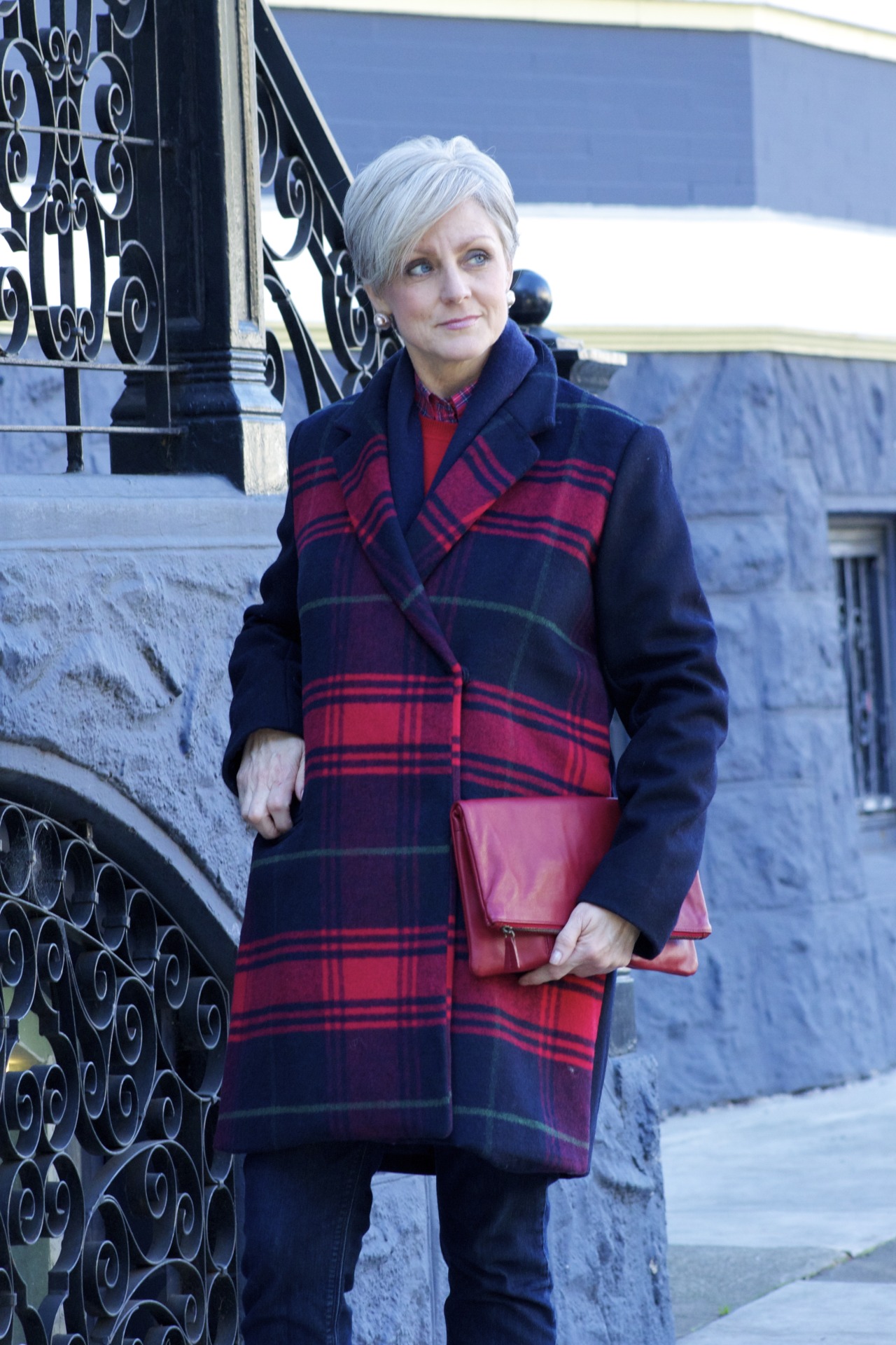 denim #JCrew; coat #Gap; clutch #MarkandGraham; shoes #Ninewest