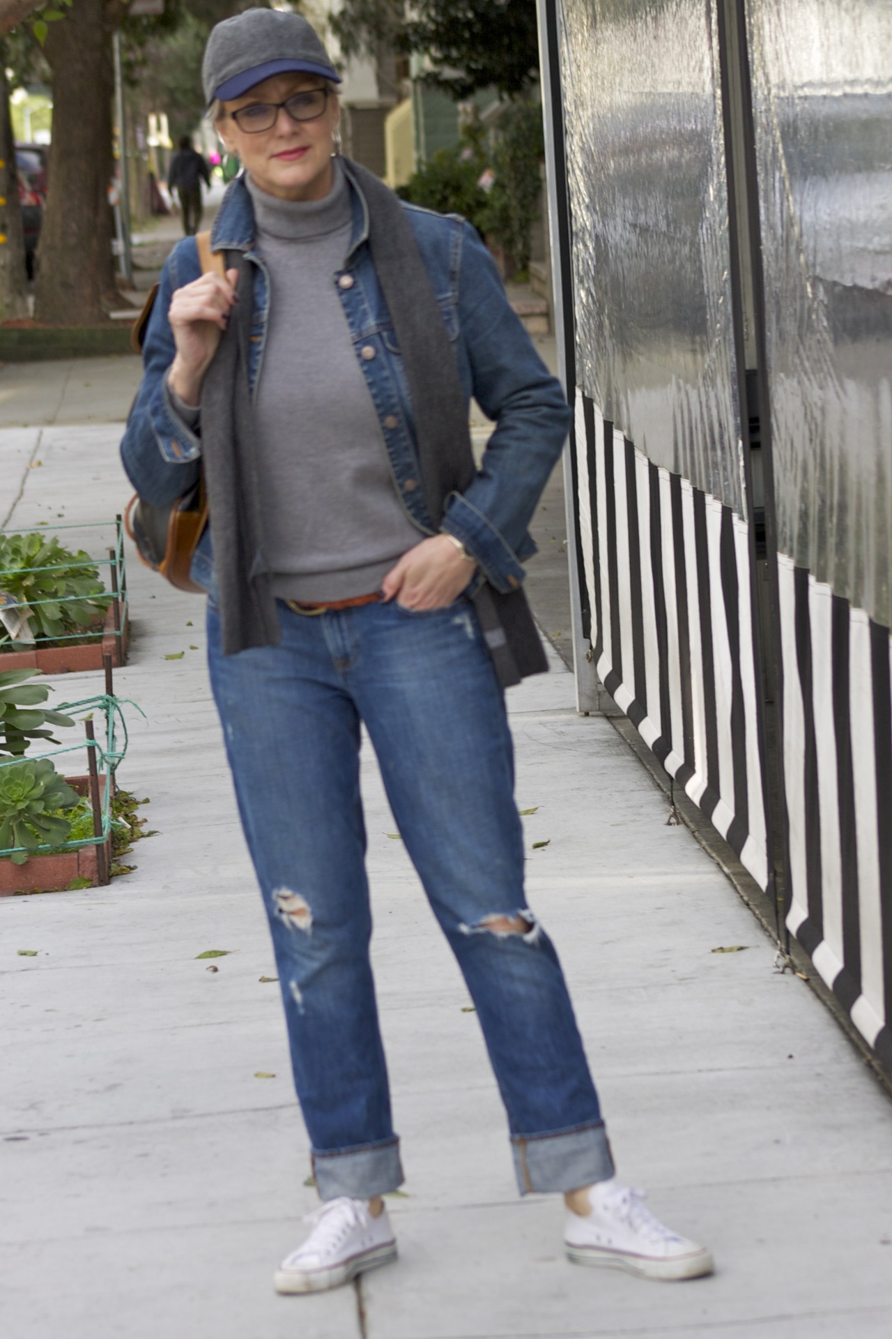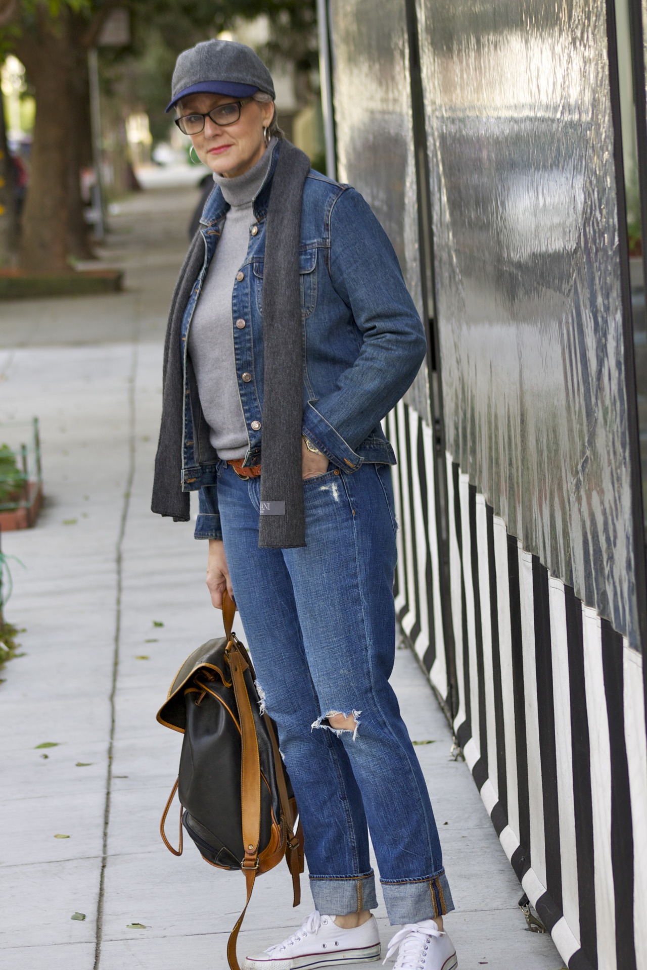 there is nothing better than throwing on a pair of blue jeans, and jean jacket for a relaxed look. today, i am off to a puppy social with oscar, and that calls for an outfit that can stand up to some wear-and-tear. i’d forgotten how much work puppies are! (although, totally worth every minute.) i have my chuck taylor’s on so i can race after oscar if the situation calls for it, my backpack holds his treats, and leash, and the baseball cap just seemed appropriate for a day like this.