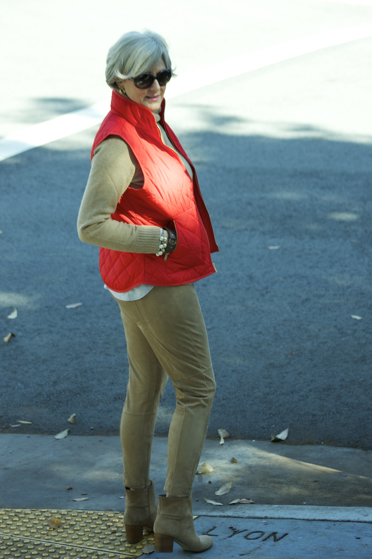 leggings @zara; shirt jcrew; sweater ralphlauren; vest @oldnavy; booties @bananarepublic; gloves ralphlauren; sunglasses @rayban